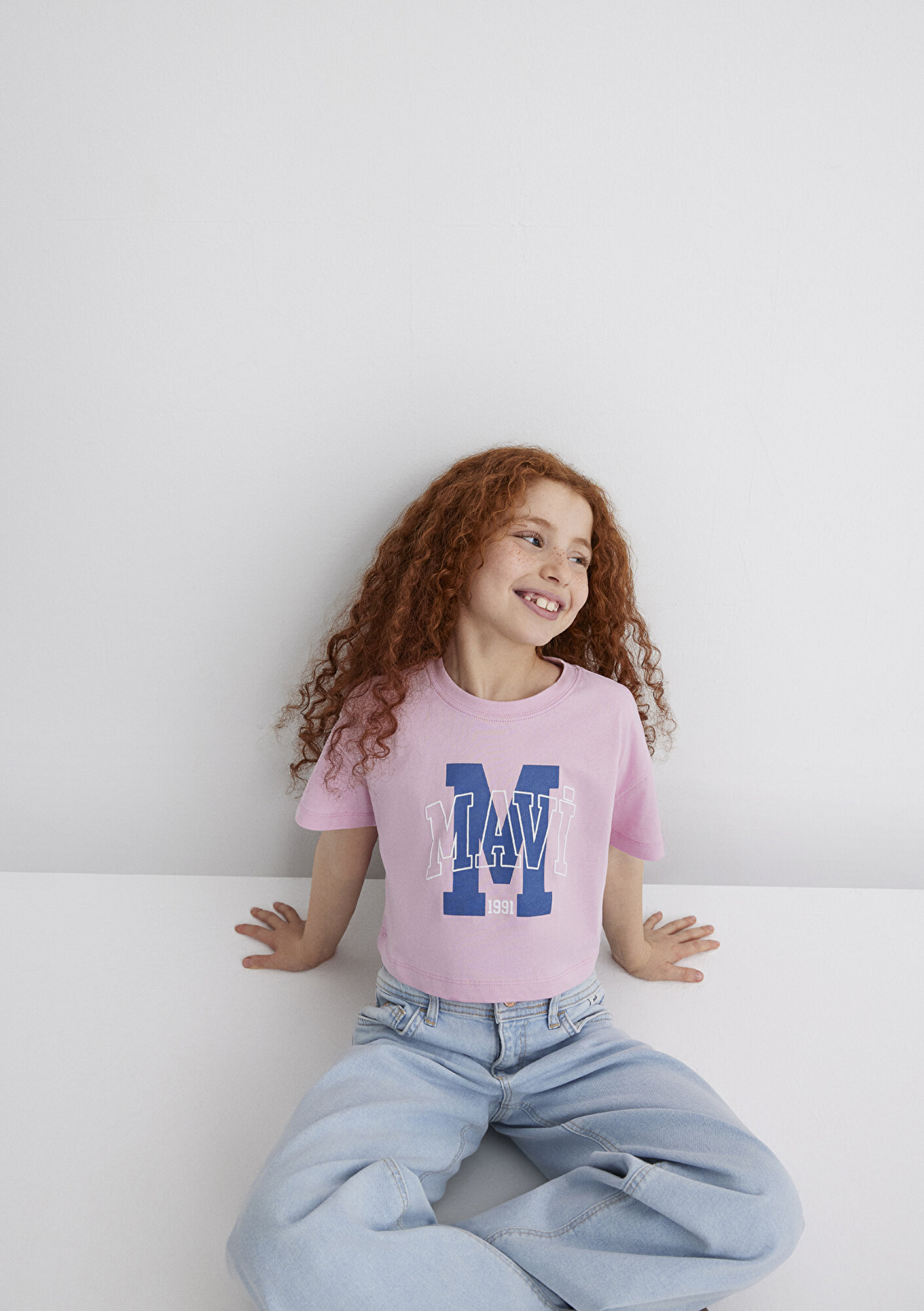 Mavi M Logo Baskılı Pembe Tişört Loose Fit / Bol Rahat Kesim 7610276-86953
