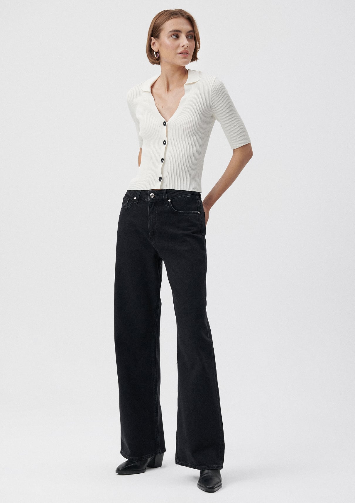 Bel ve basene oturan, basenden sonra açılarak genişleyen Wide Leg Jean. Geniş paça. Arka etiket detayıyla her zaman göz alıcı ve trendy. Malibu Koyu Gri Jean Pantolon