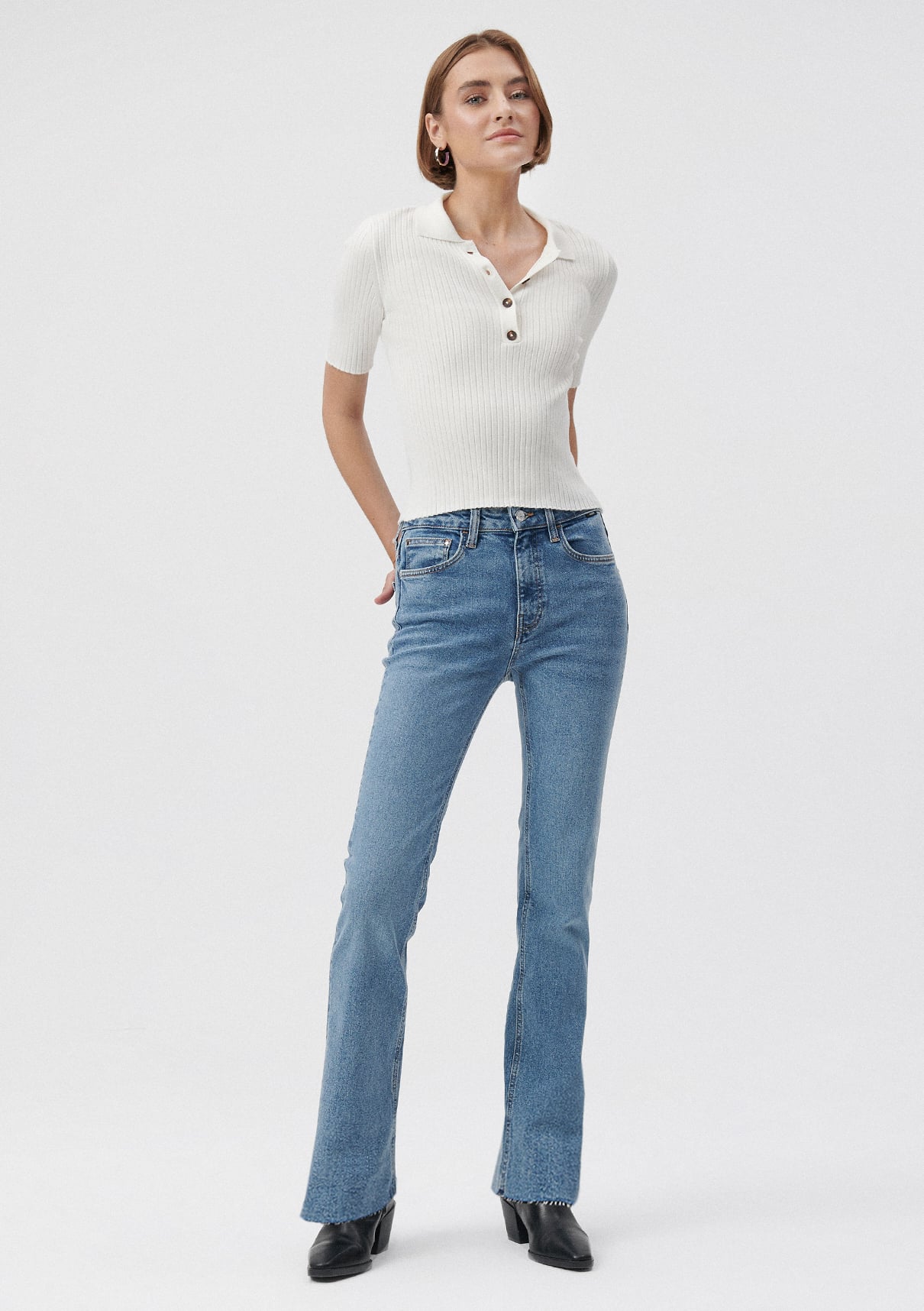 Mavi nin denim koleksiyonundan Maria Indigo Mavi 90S Jean Pantolon. Flare Jean. Yüksek bel. Dizden sonra açılan İspanyol paça. 90 lar denim görüntüsünün günümüz trendleriyle yorumu.