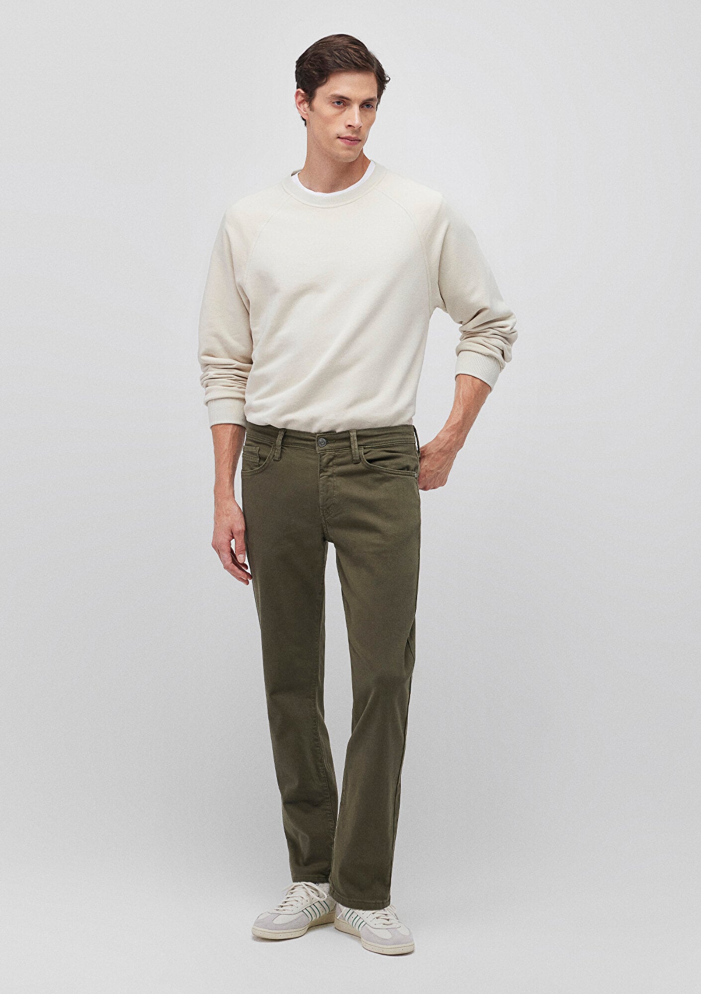 Mavi nin erkek koleksiyonundan Martin Zeytin Yeşili Comfort Gabardin Pantolon. Basende rahat, düz paça.