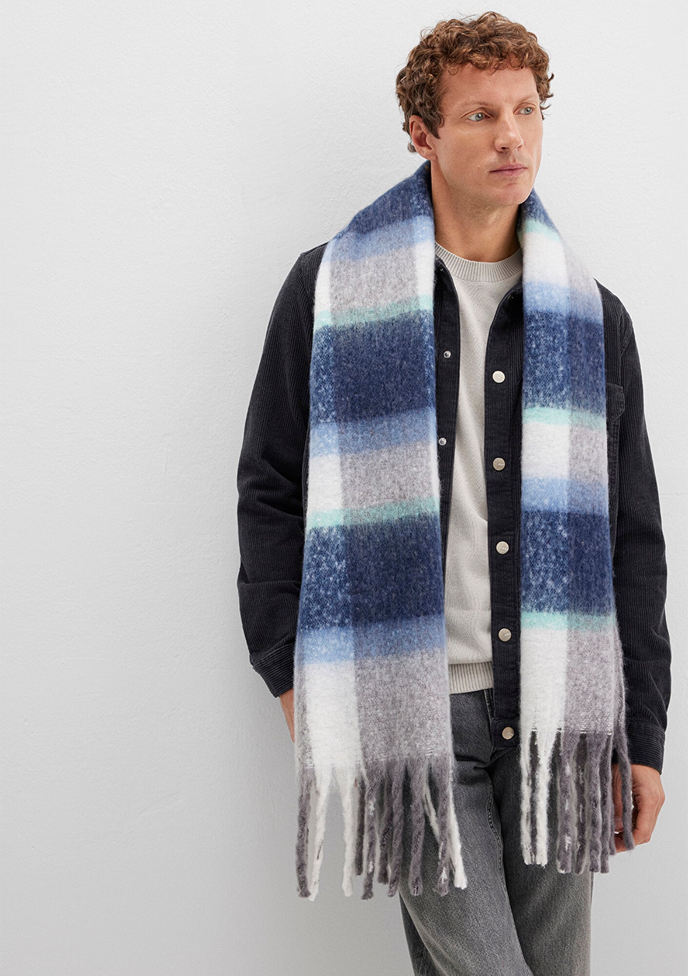Mavi nin aksesuar koleksiyonundan Mavi Atkı. En 36 cm x Boy 182 cm Püskül boyu 15 cm