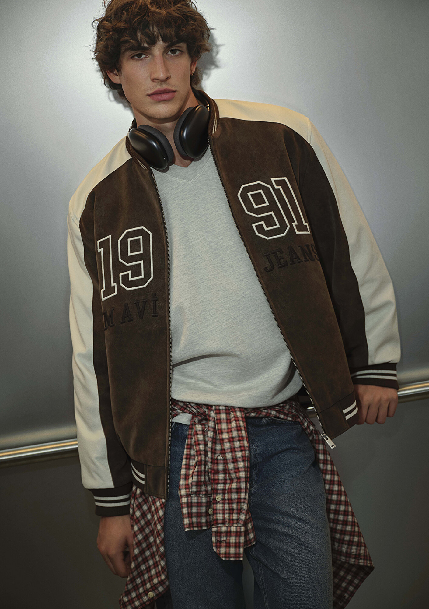 Mavi nin erkek koleksiyonundan Mavi Baskılı Suni Süet Kolej Ceketi.