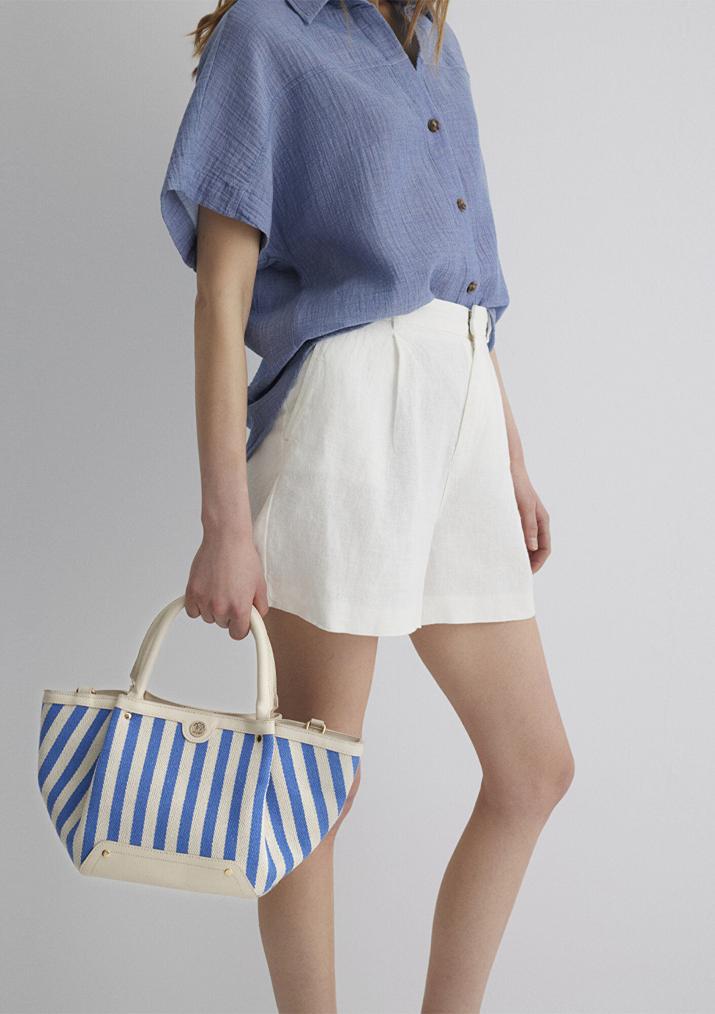 Mavi nin aksesuar koleksiyonundan Mavi Çizgili Omuz Çantası. En 38 cm x Boy 16,5 cm x Derinlik 15 cm.