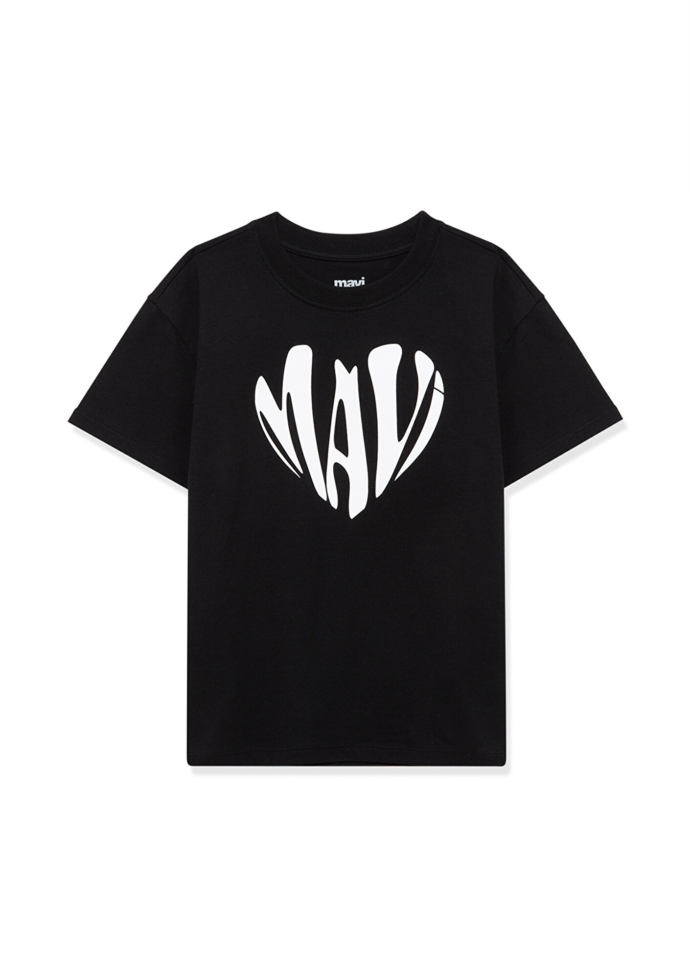 Mavi Mavi Kalp Baskılı Siyah Tişört Loose Fit / Bol Rahat Kesim 7610192-900