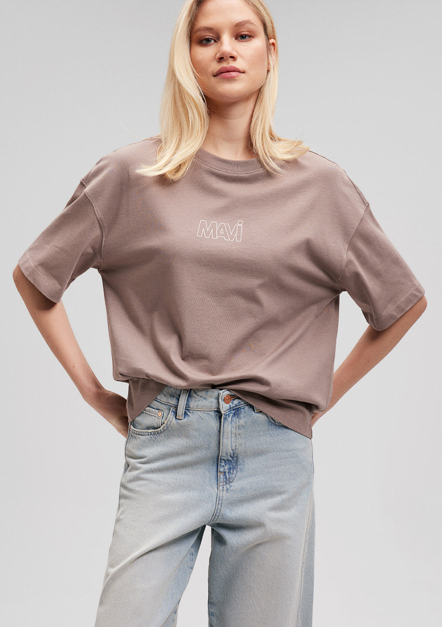 Mavi Mavi Logo Baskılı Bej Tişört Oversize / Geniş Kesim 1611592-70364