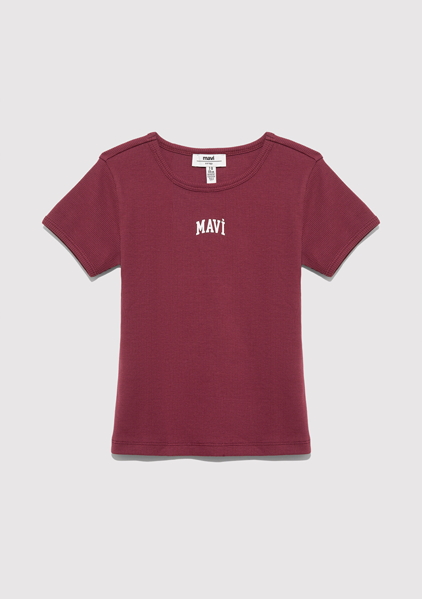 Mavi Mavi Logo Baskılı Bordo Tişört Fitted / Vücuda Oturan Kesim 7610350-70393