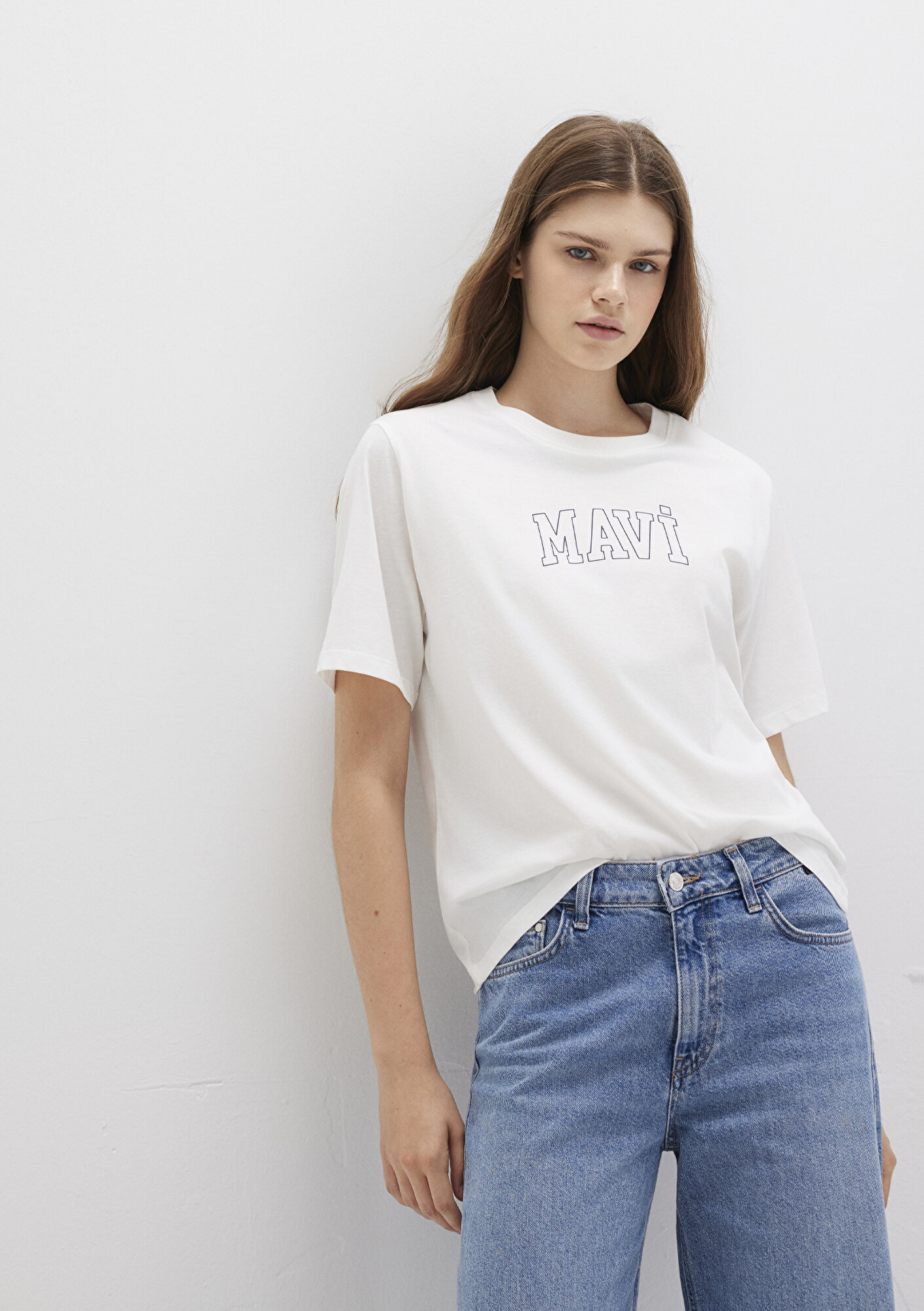 Mavi nin kadın koleksiyonundan Mavi Logo Baskılı Ekru Tişört.