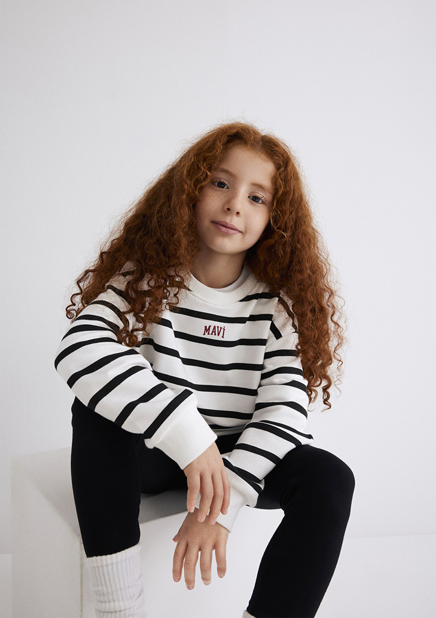 Mavi nin kız çocuk koleksiyonundan Mavi Logo Baskılı Siyah Çizgili Sweatshirt. Şardonsuz.