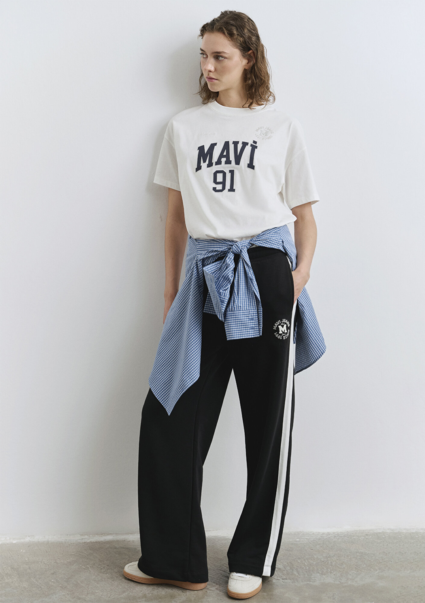 Mavi nin kadın koleksiyonundan Mavi Logo Şerit Detaylı Siyah Eşofman Altı.