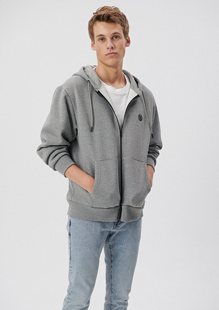 Mavi Mavi Logolu Kapüşonlu Fermuarlı Gri Sweatshirt 066979-34686