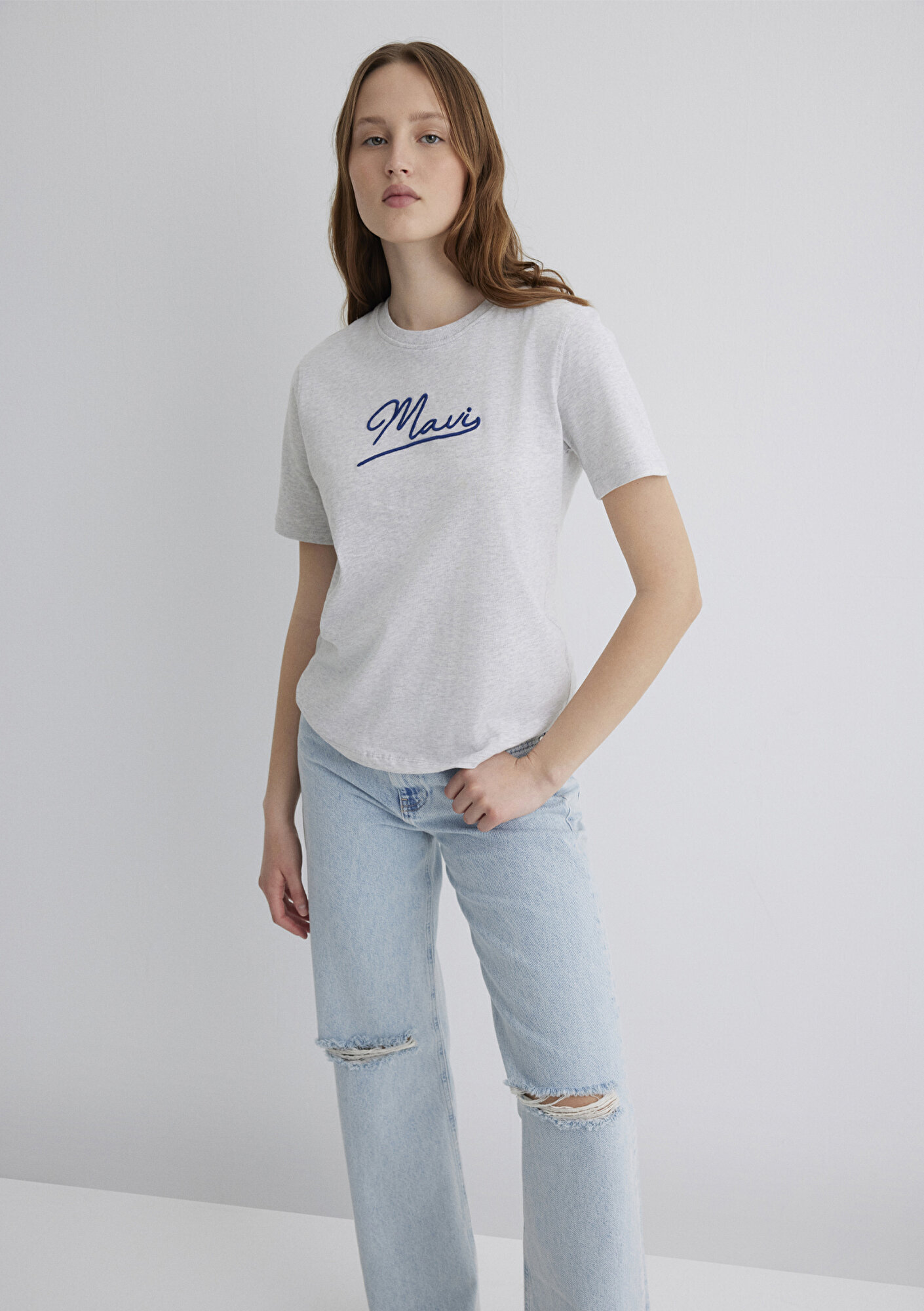 Mavi nin kadın koleksiyonundan Mavi Nakışlı Gri Tişört.