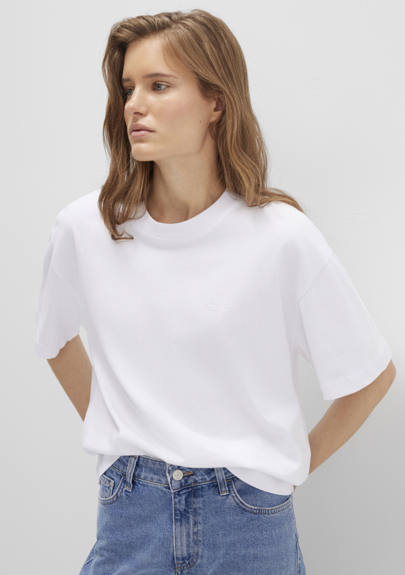 Mavi Mavi Naskışlı Beyaz Basic Tişört Loose Fit / Bol Rahat Kesim 1613225-620