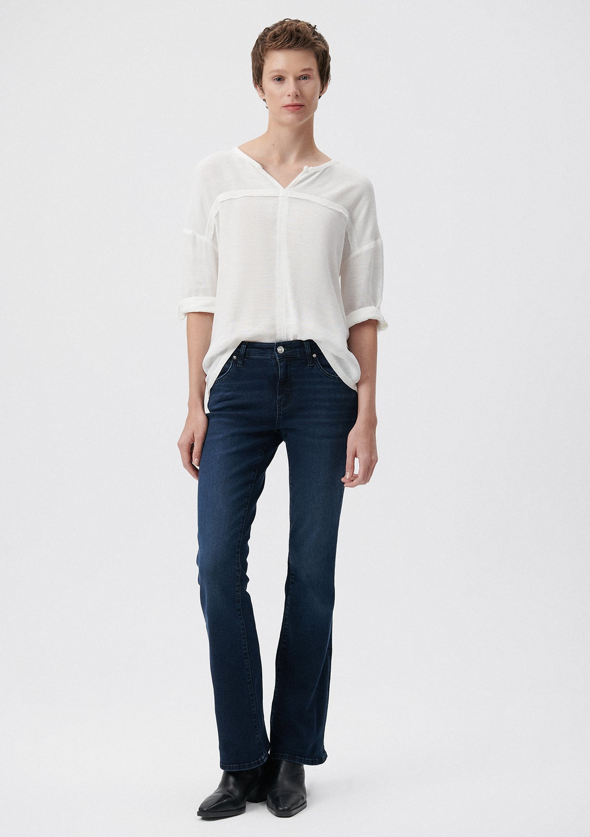 Mavi nin denim koleksiyonundan Molly Lacivert Jean Pantolon. Modern klasik kesim, bel ve basene oturan, baldırdan sonra hafif açılan çizme paça, Bootcut Jean. Normal bel. Denim modasını günlük giyimde yorumlayan Mavi kadınının jeani.