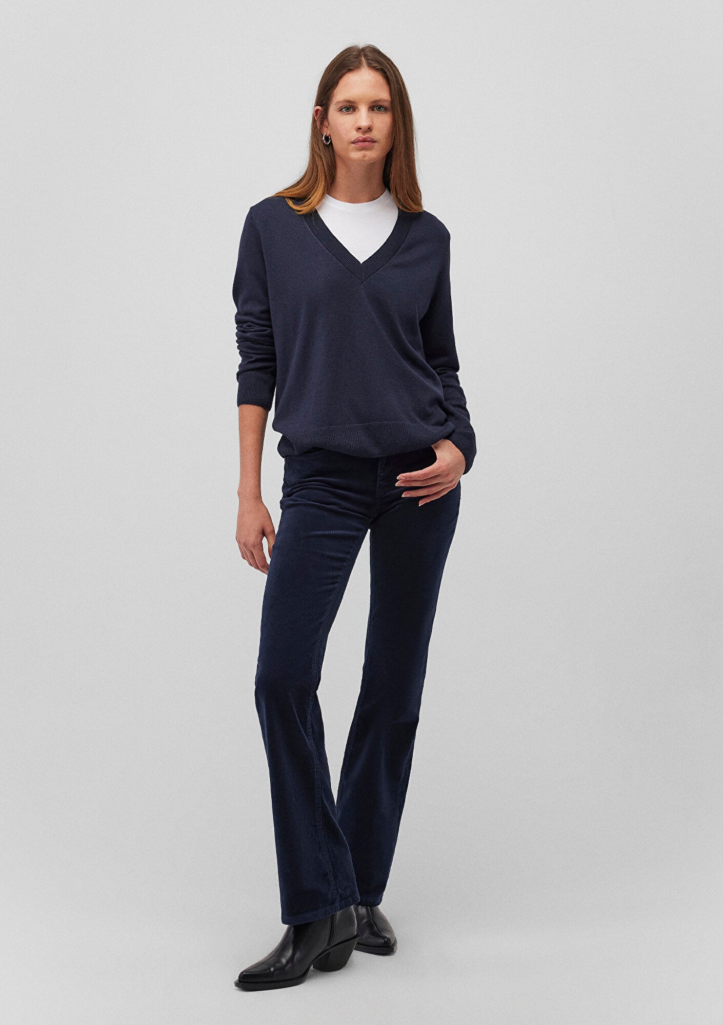 Mavi nin kadın koleksiyonundan Molly Lacivert Kadife Pantolon. Bel ve basene oturan, normal bel, modern klasik kesim Bootcut kadife pantolon. Baldırdan sonra hafif açılan çizme paça.