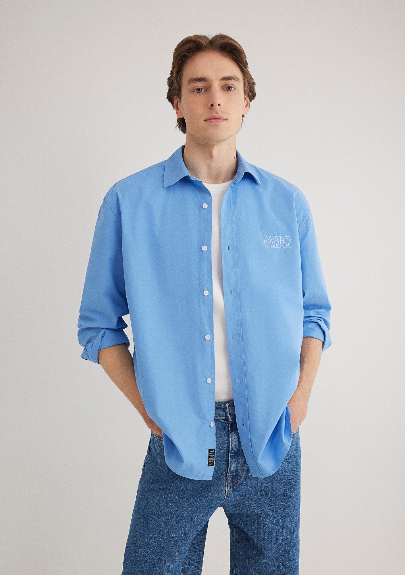 Mavi nin erkek koleksiyonundan MVJNS Nakışlı Mavi Gömlek.
