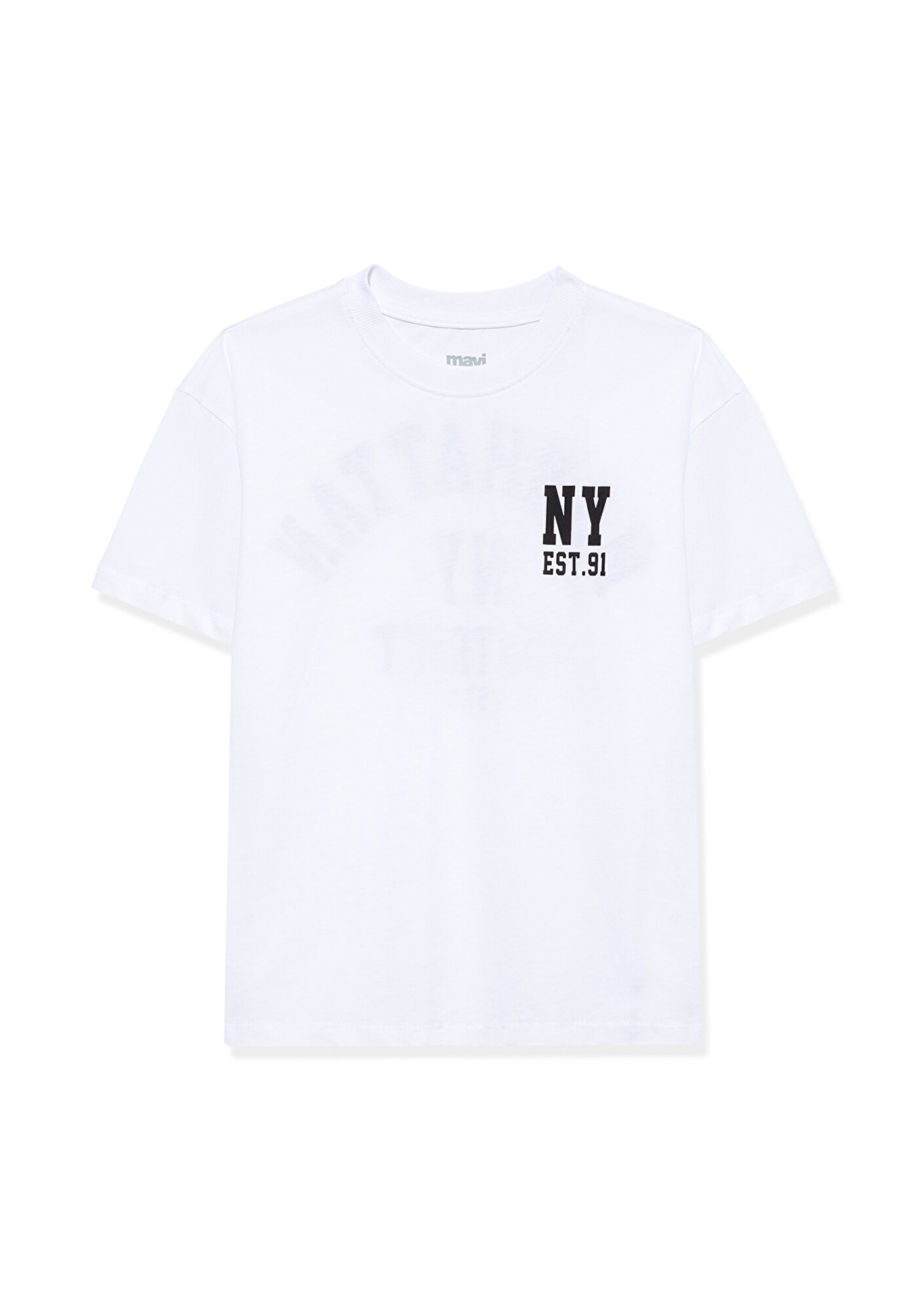 Mavi NY Baskılı Beyaz Tişört Oversize / Geniş Kesim 6610196-620