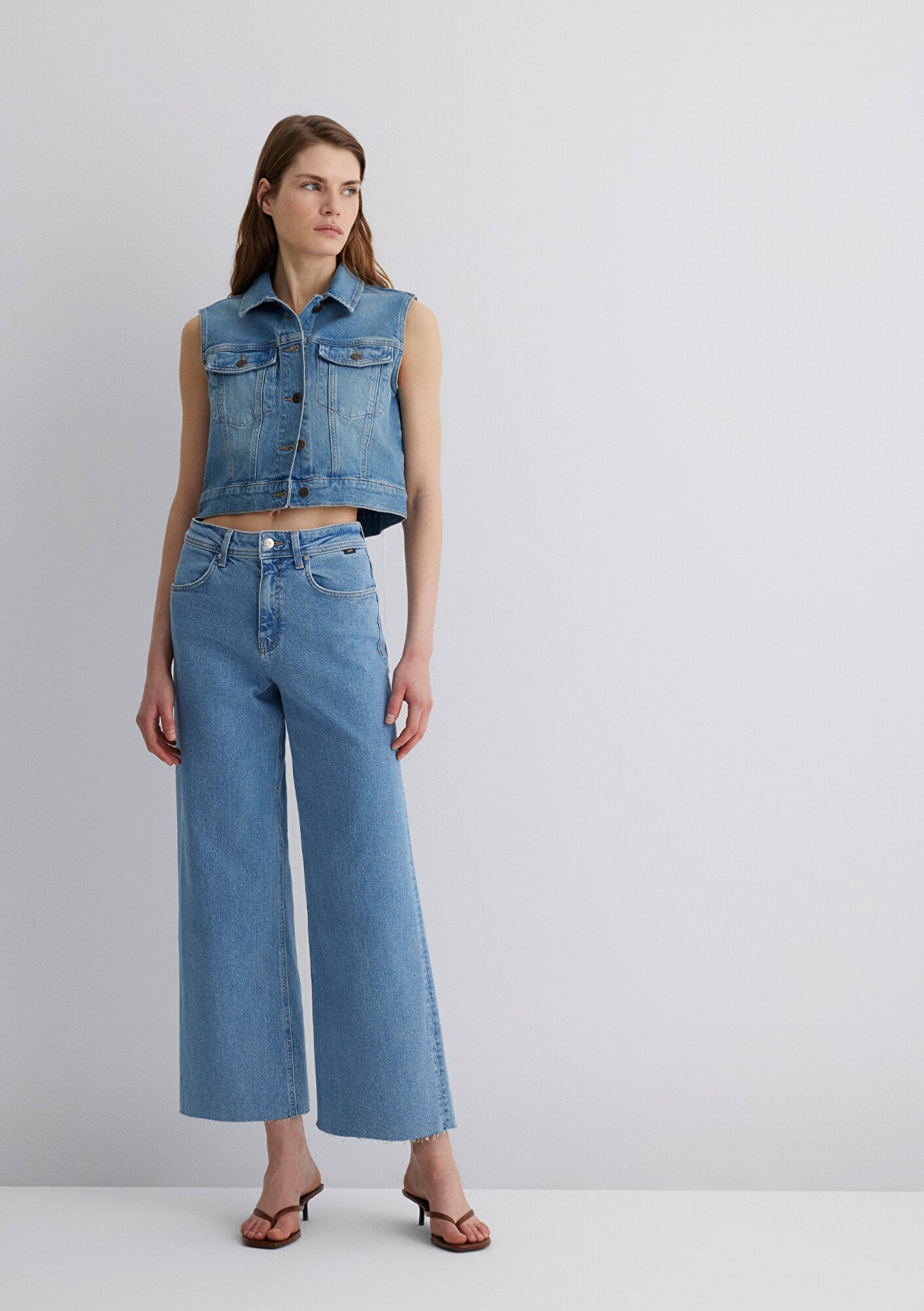 Mavi nin denim koleksiyonundan Paloma M Girly Açık Mavi Jean Pantolon. Bel ve basene oturan, rahat kesim Wide Leg Jean. Geniş paça.