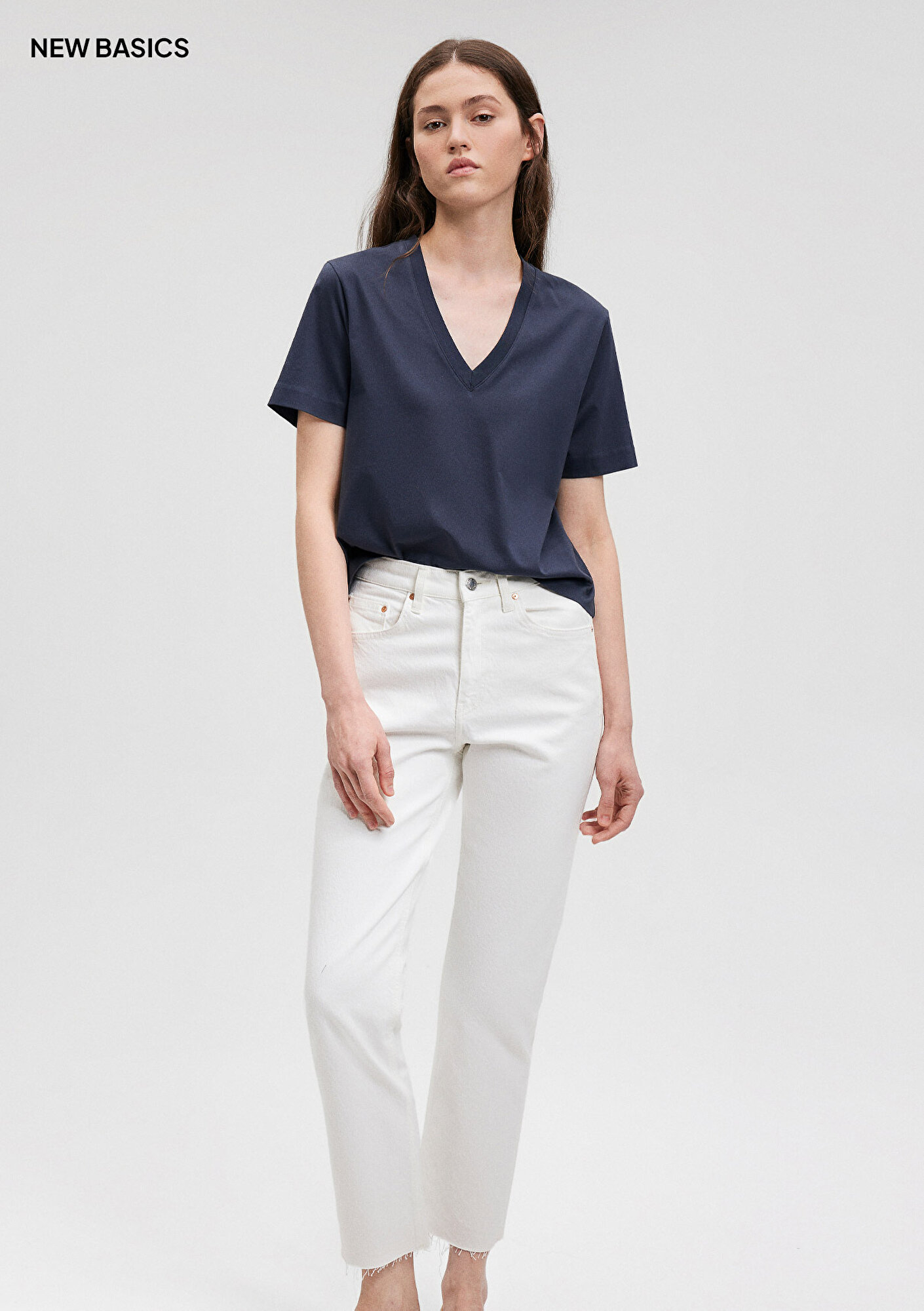 Mavi nin New Basics koleksiyonundan Pamuklu Merserize V Yaka Mavi Basic Tişört. Sadeliği yüksek kaliteyle buluşturan New Basics koleksiyonu. Yapısındaki merserize kumaş sayesinde daha dayanıklı ve sahip olduğu gizli baskı dikiş detaylarıyla daha şık.