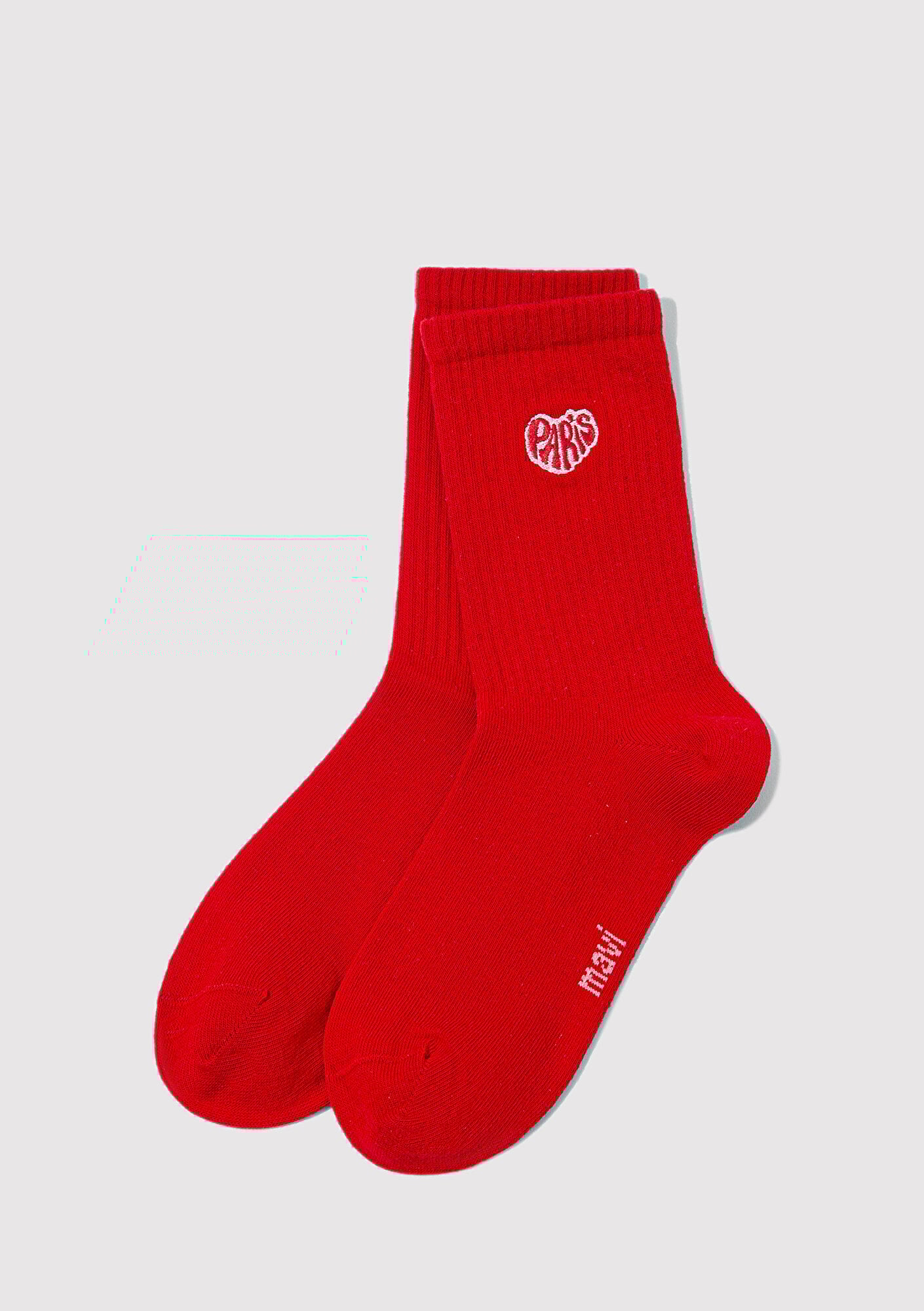 Mavi nin kadın koleksiyonundan Paris Nakışlı Kırmızı Soket Çorap.