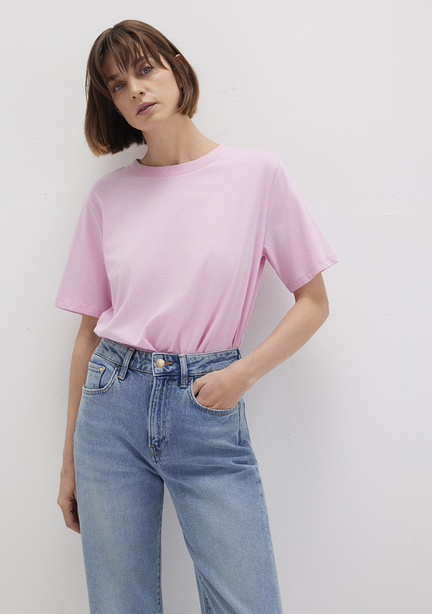 Pembe Basic Tişört, yüzde yüz pamuklu orta ağırlıkta kumaştan üretilmiştir. Bisiklet yaka ve kısa kollu tasarımıyla klasik bir görünüm sunarken, loose fit rahat kesimi ile konforlu bir kullanım sağlar. Organik malzemelerden üretilen bu tişört, sürdürülebilir moda anlayışını yansıtır ve günlük kombinler için ideal bir seçenektir.