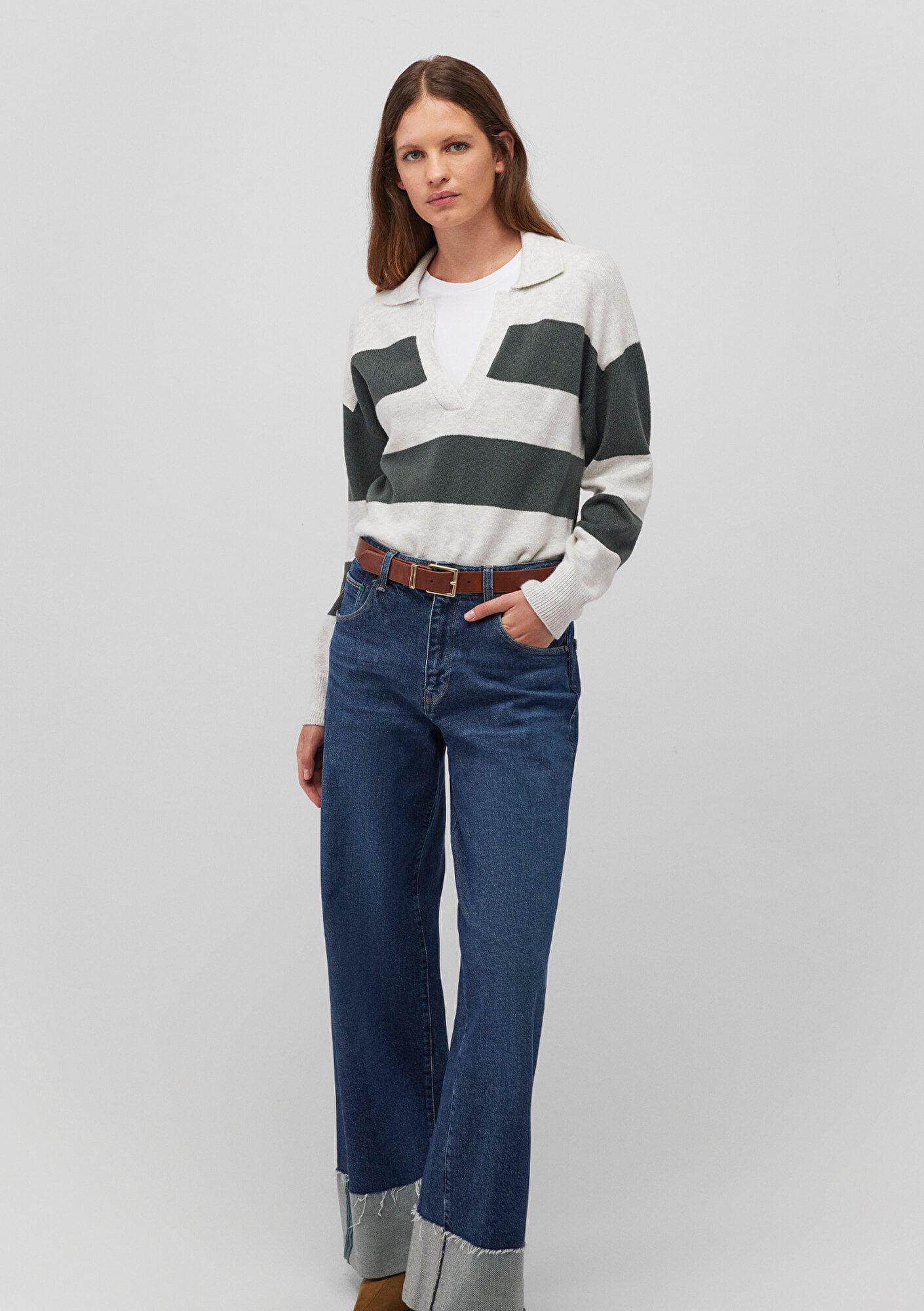 Mavi nin kadın koleksiyonundan Polo Yaka Çizgili Yeşil Kazak