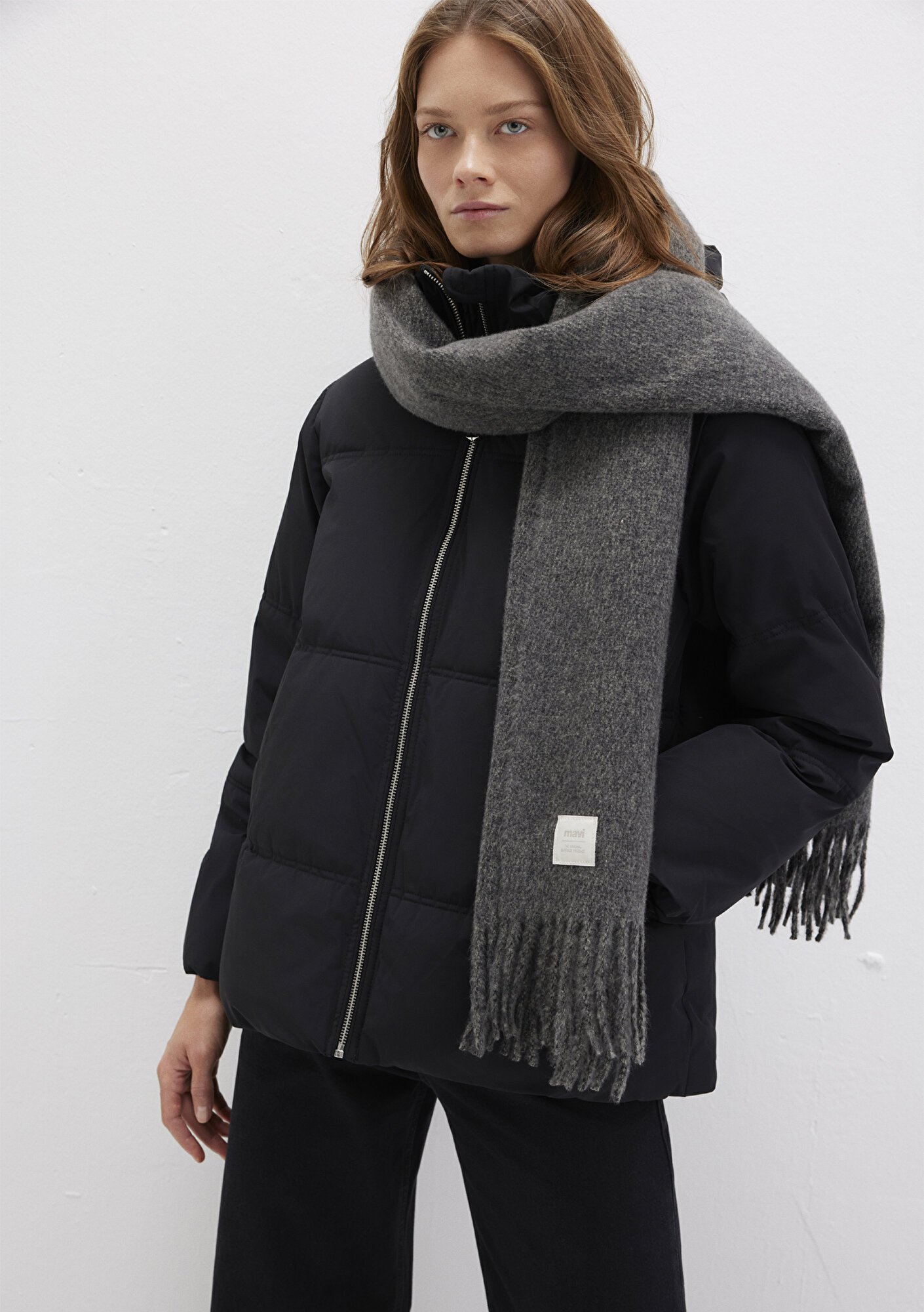 Mavi nin aksesuar koleksiyonundan Püsküllü Gri Atkı. En 51 cm x Boy 185 cm Püskül boyu 12 cm