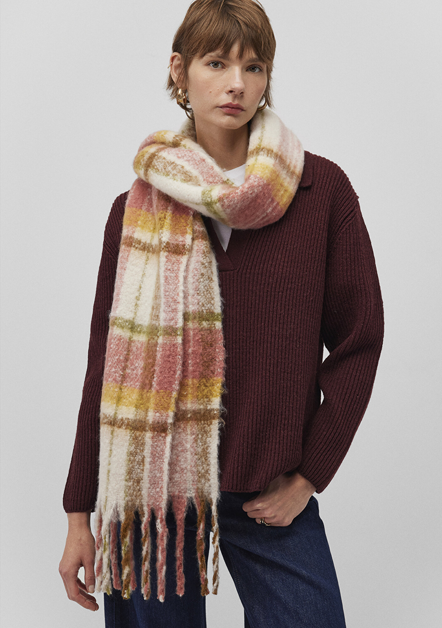Mavi nin aksesuar koleksiyonundan Püsküllü Kareli Atkı. En 38 cm x Boy 200 cm