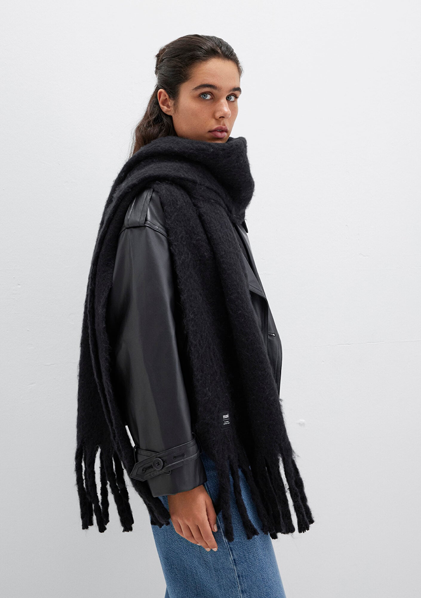Mavi nin aksesuar koleksiyonundan Siyah Atkı. En 38 cm x Boy 200 cm Püskül boyu 20 cm