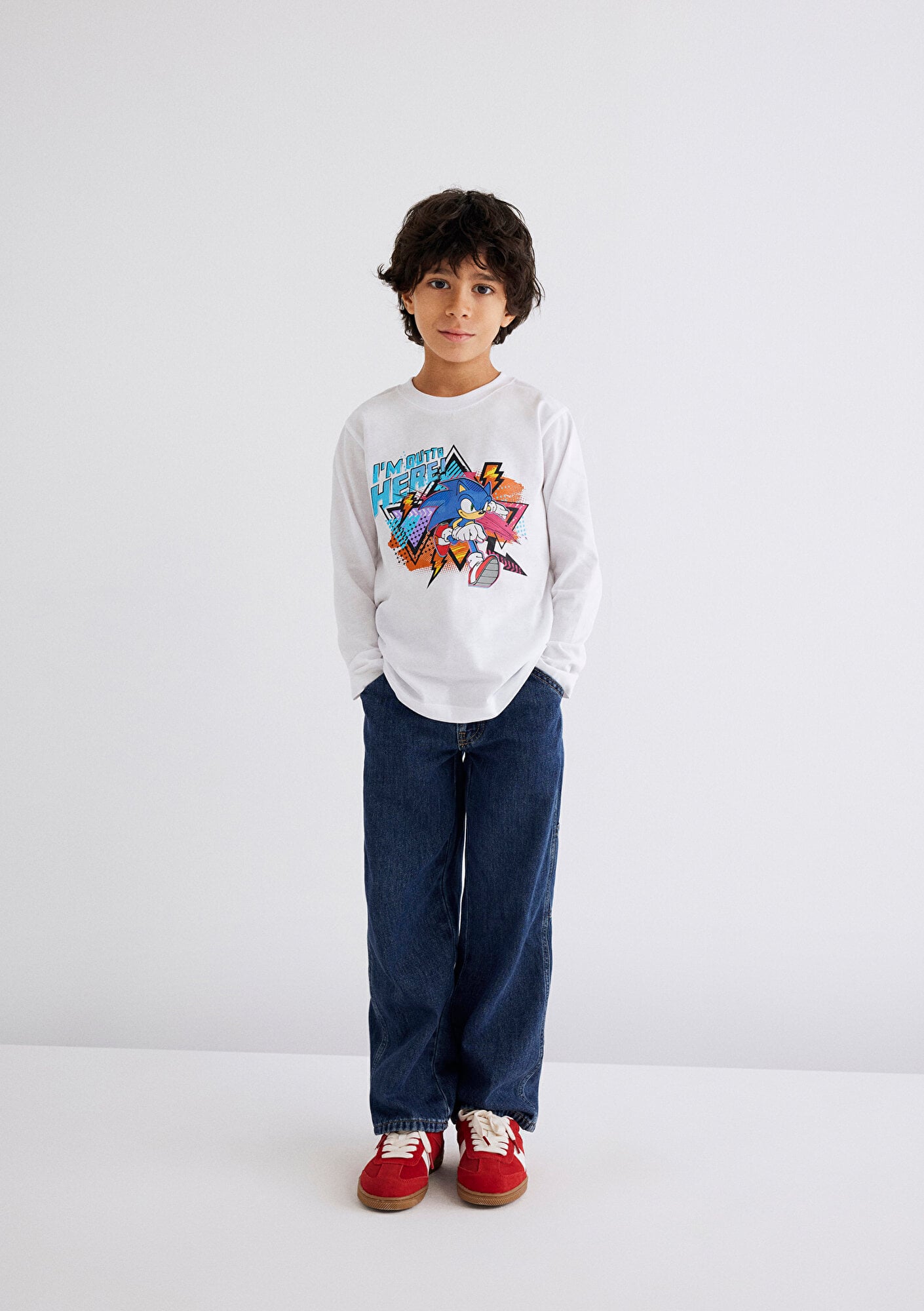 Sonic Baskılı Beyaz Tişört, yüzde yüz pamuklu hafif ağırlıklı kumaştan üretilmiş çocuk bölümü için tasarlanmış bir üründür. Uzun kollu ve bisiklet yakalı olan bu tişört, rahat bir kullanım sunarken, ön yüzündeki renkli Sonic karakteri baskısı ile dikkat çeker. Im outta here yazısı ve geometrik desenlerle süslenmiş grafik, tişörte enerjik bir görünüm katar.