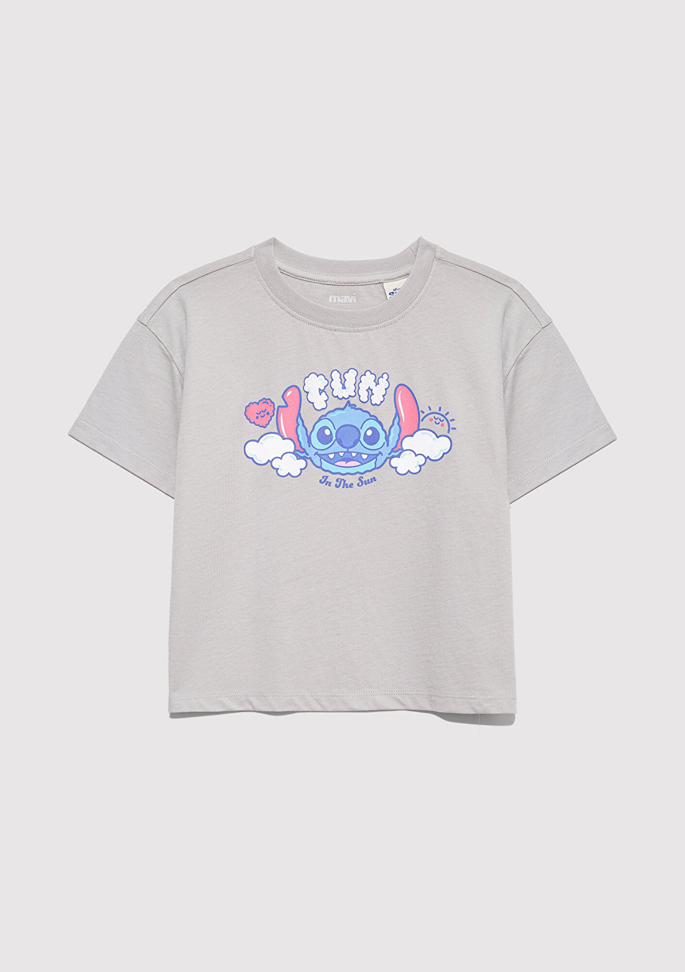 Mavi nin kız çocuk koleksiyonundan Stitch Baskılı Gri Tişört.