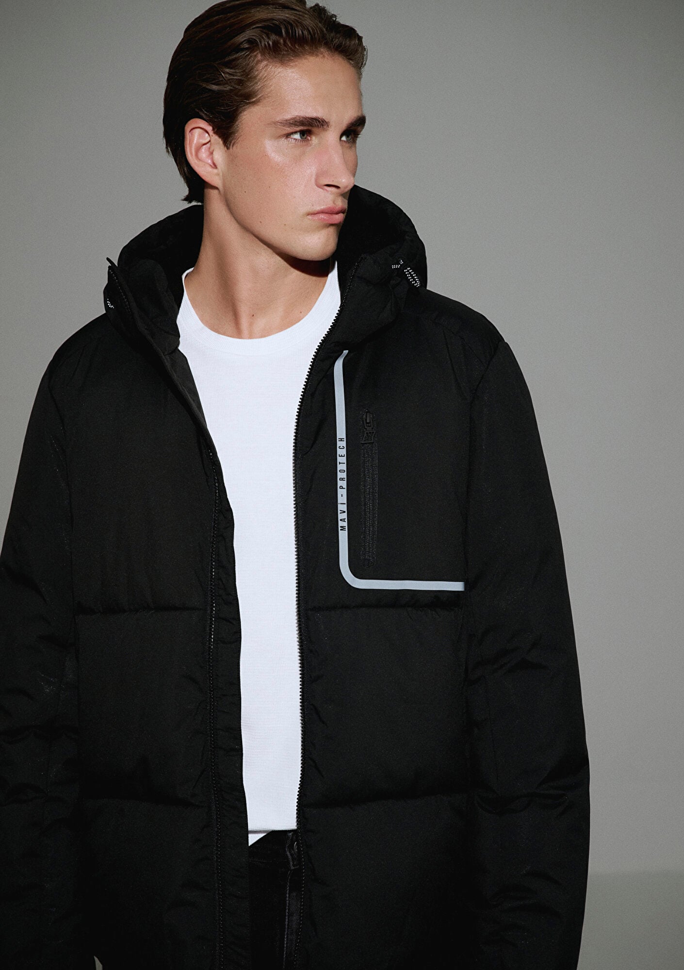 Mavi nin dış giyim koleksiyonundan Su İtici Siyah Şişme Mont. İki adet fermuarlı yan cep, bir adet fermuarlı ön cep, stoperli iple ayarlanabilir sabit kapüşon, içten stoperli iple ayarlanabilir etek, içi kol hariç şardonlu, bir adet iç cep, su itici özellikli kumaş, önü reflektör detaylı.