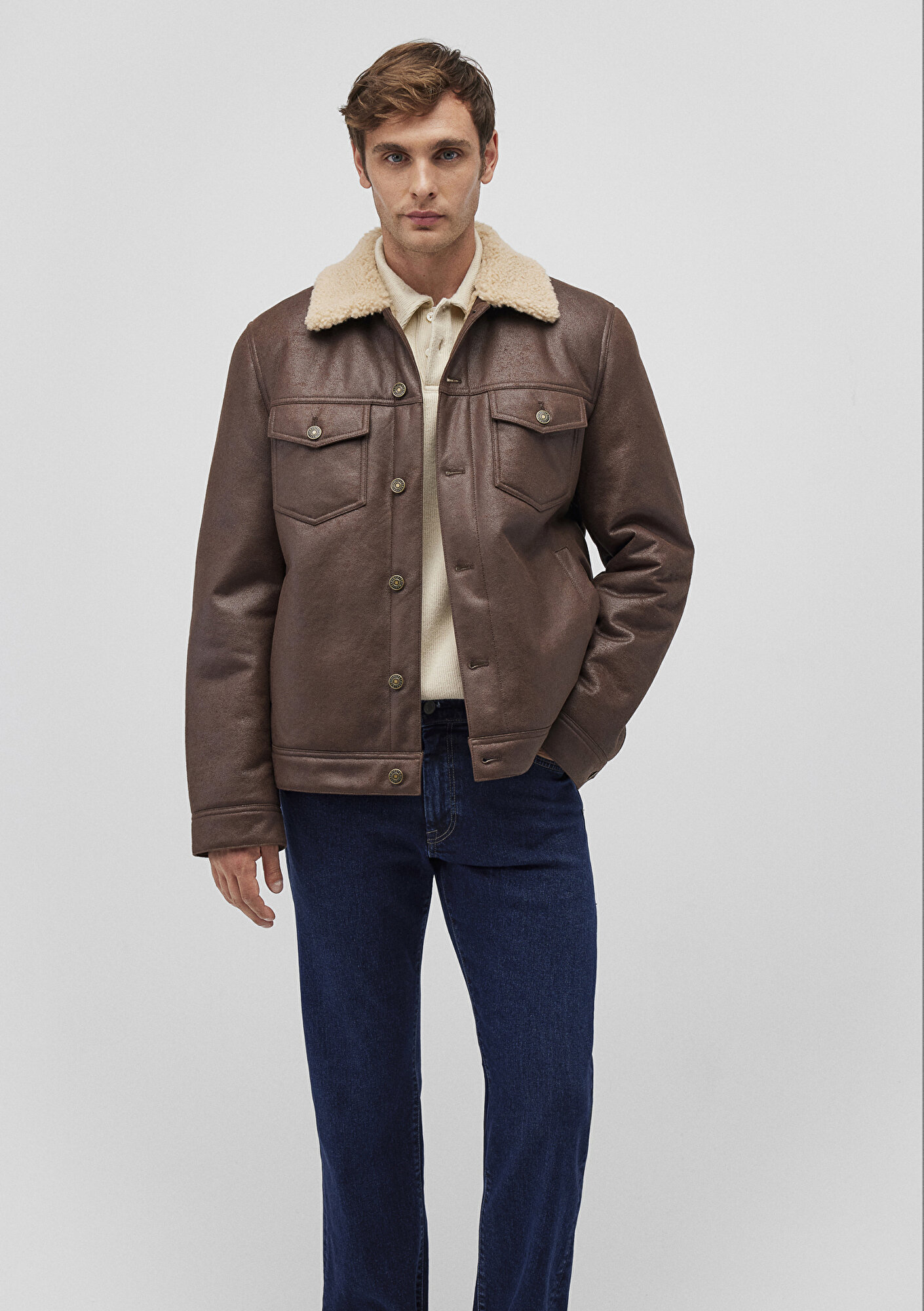 Mavi Suni Kürk Detaylı Kahverengi Suni Deri Ceket Regular Fit / Normal Kesim 0110460-71603