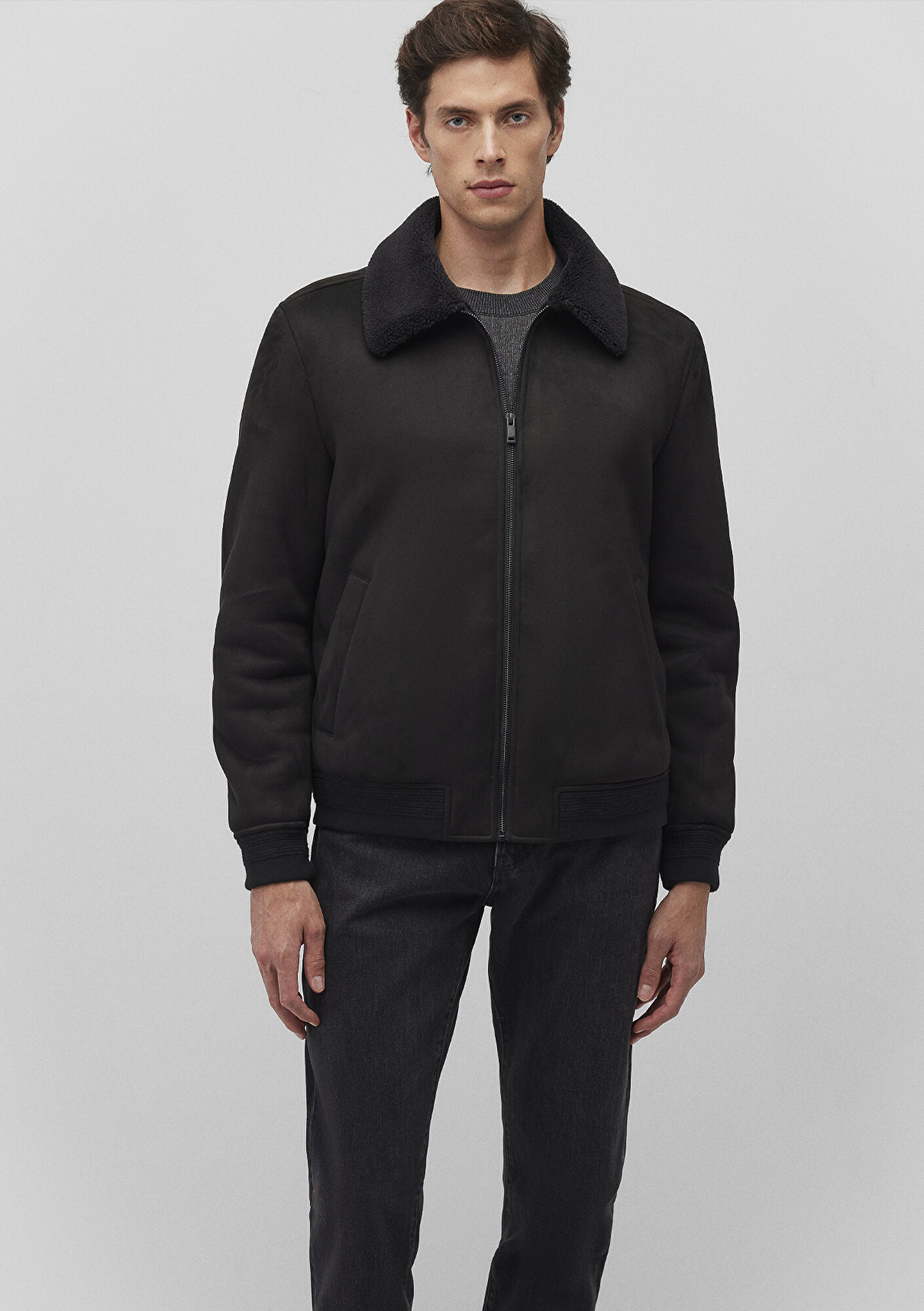 Mavi Suni Kürk Detaylı Siyah Suni Süet Ceket Regular Fit / Normal Kesim 0110450-900