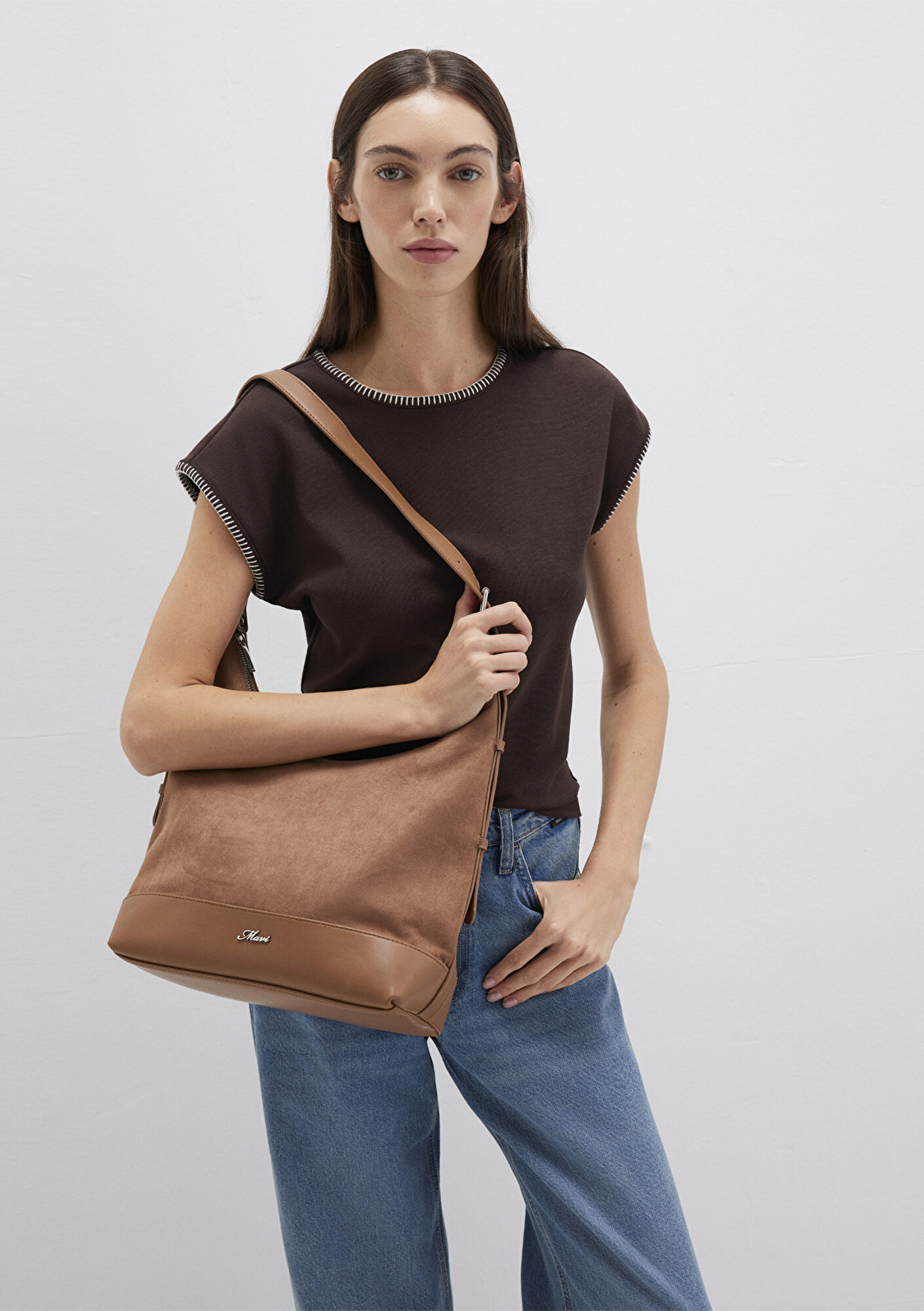 Mavi nin aksesuar koleksiyonundan Suni Süet Kahverengi Omuz Çantası.
