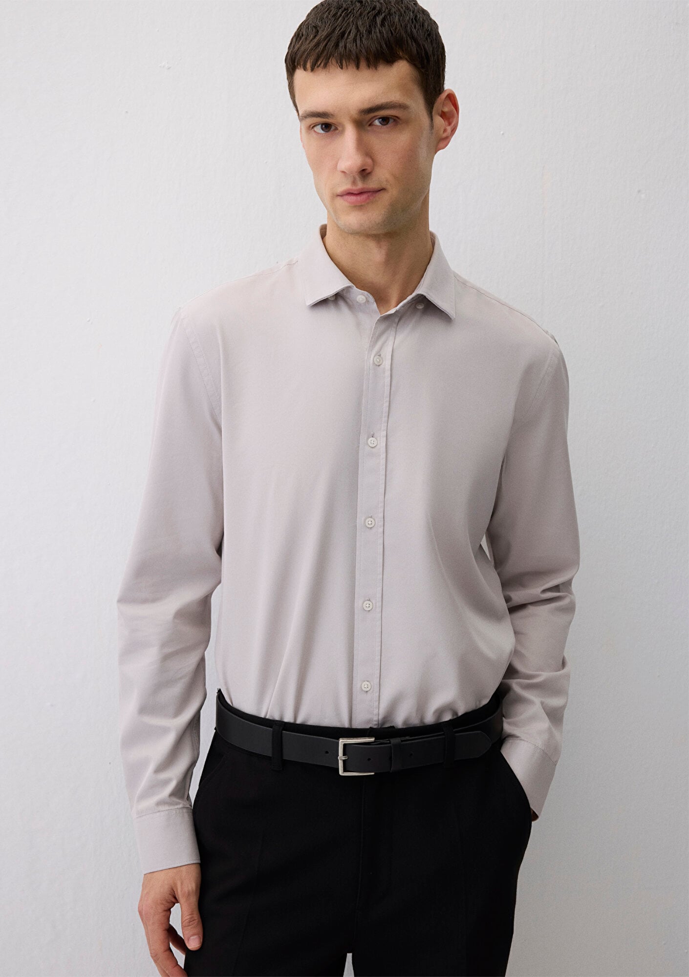 Pamuk ve Lyocell Tencel TM karışımı kumaşıyla yumuşak bir his ve konforlu bir deneyim sunan bu gömlek, slim fit kesimiyle vücuda uyum sağlar. Twill dokunun dökümlü yapısı ciltte ipeksi bir his bırakırken, nefes alabilir özelliği sayesinde her mevsim kullanım için idealdir. İş hayatında modern, kendinden emin ve güven veren bir duruş sunan bu gömlek, ofisten iş yemeklerine, resmi davetlerden şehir hayatına kadar şıklığını korur. Gömlek yakası, uzun kollu tasarımı ve düğmeleriyle klasik bir stil sunarken, ayarlanabilir manşetleri, omuz ve robada dikişsiz görünümüyle kusursuz bir silüet oluşturur. Yakadaki kalın tela desteği formunu gün boyu korurken, gizli düğme detayı ise yakayı sabitleyerek düzenli ve kusursuz bir görünüm sağlar. Ön patında yer alan ince mühür nakış detayı, şık bir dokunuş katarken, detaylardaki özenli işçilik rafine bir tarz yaratır. Bu ürün aynı zamanda Mavi nin All Blue koleksiyonunun bir parçasıdır ve üretiminde Tencel TM sertifikalı kumaş kullanılmıştır.