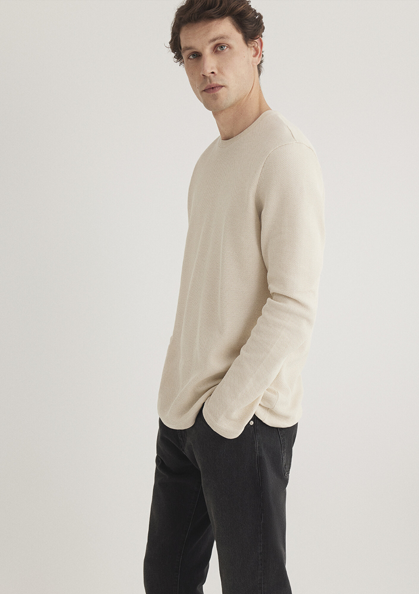 Uzun Kollu Bej Basic Tişört, yüzde yüz pamuklu orta ağırlıkta kumaştan üretilmiştir. Bisiklet yaka ve uzun kollu tasarımıyla klasik bir görünüm sunar. Düz dokulu ve bej renkli olan bu tişört, loose fit rahat kesimi ile konforlu bir giyim deneyimi sağlar. Sade ve şık tasarımıyla her tarza uyum sağlayan bu basic tişört, günlük kullanım için ideal bir seçenektir.