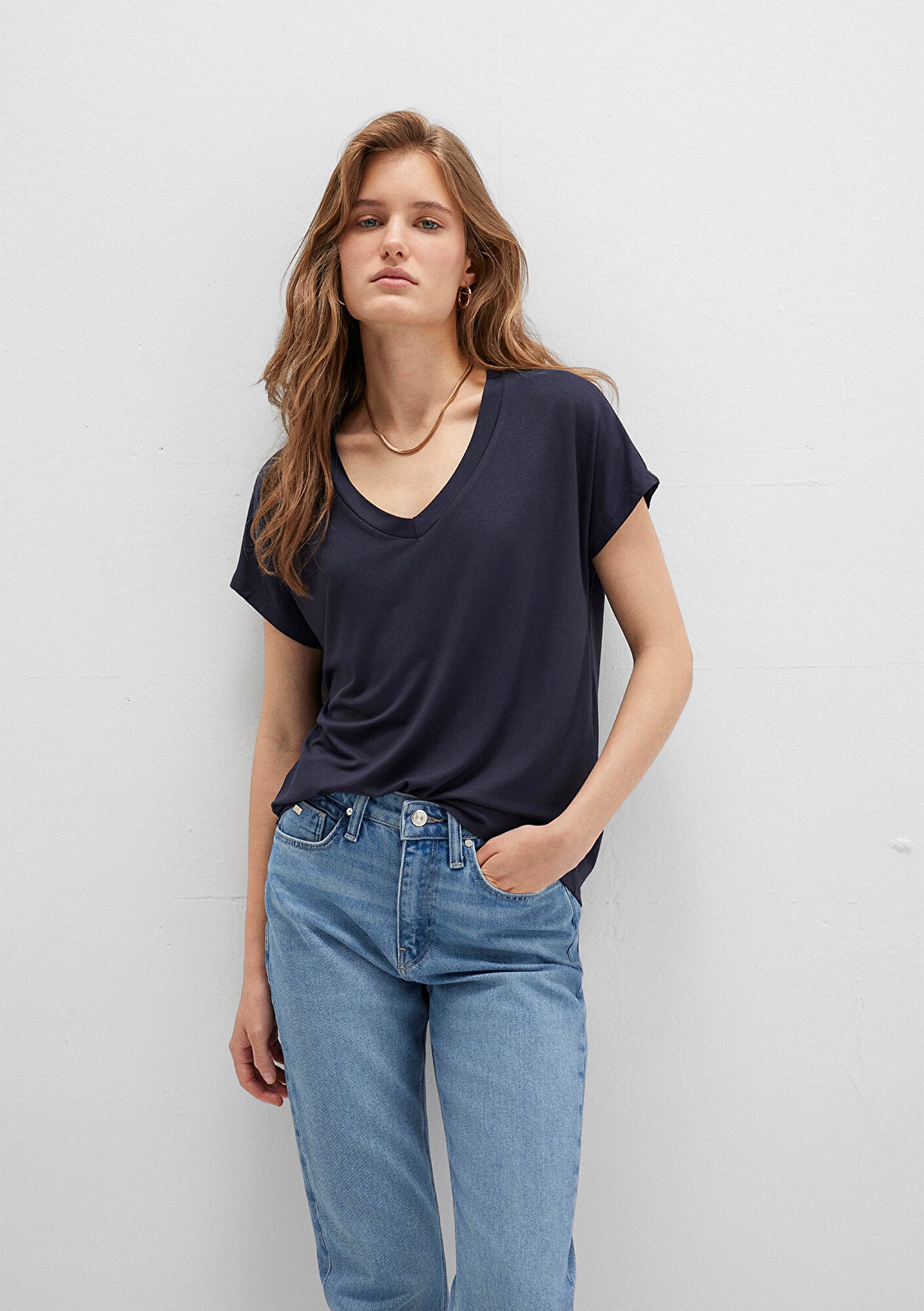 Mavi V Yaka Lacivert Basic Viskoz Tişört Regular Fit / Normal Kesim 167714-85315