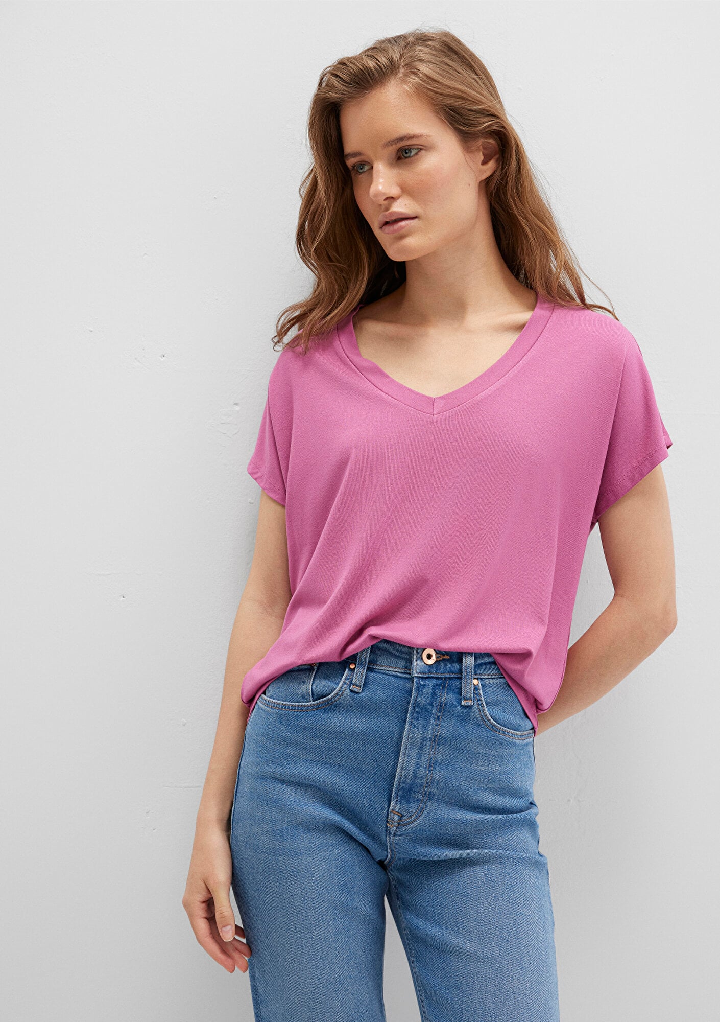 Mavi V Yaka Pembe Basic Viskoz Tişört Regular Fit / Normal Kesim 167714-70955