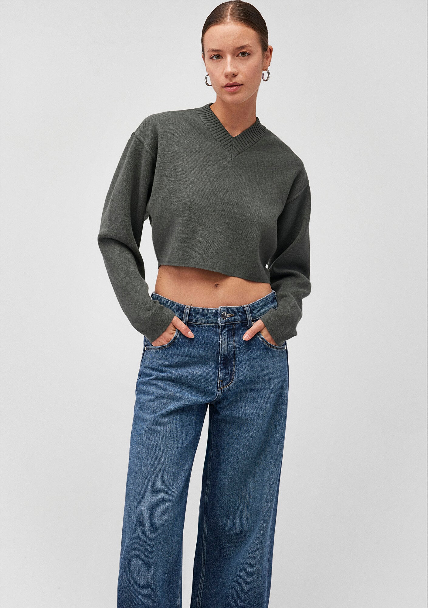 Mavi nin kadın koleksiyonundan V Yaka Yeşil Kazak