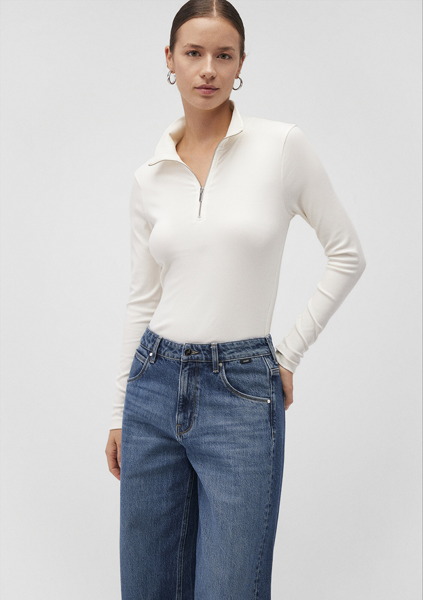 Mavi nin kadın koleksiyonundan Yarı Fermuarlı Beyaz Tişört