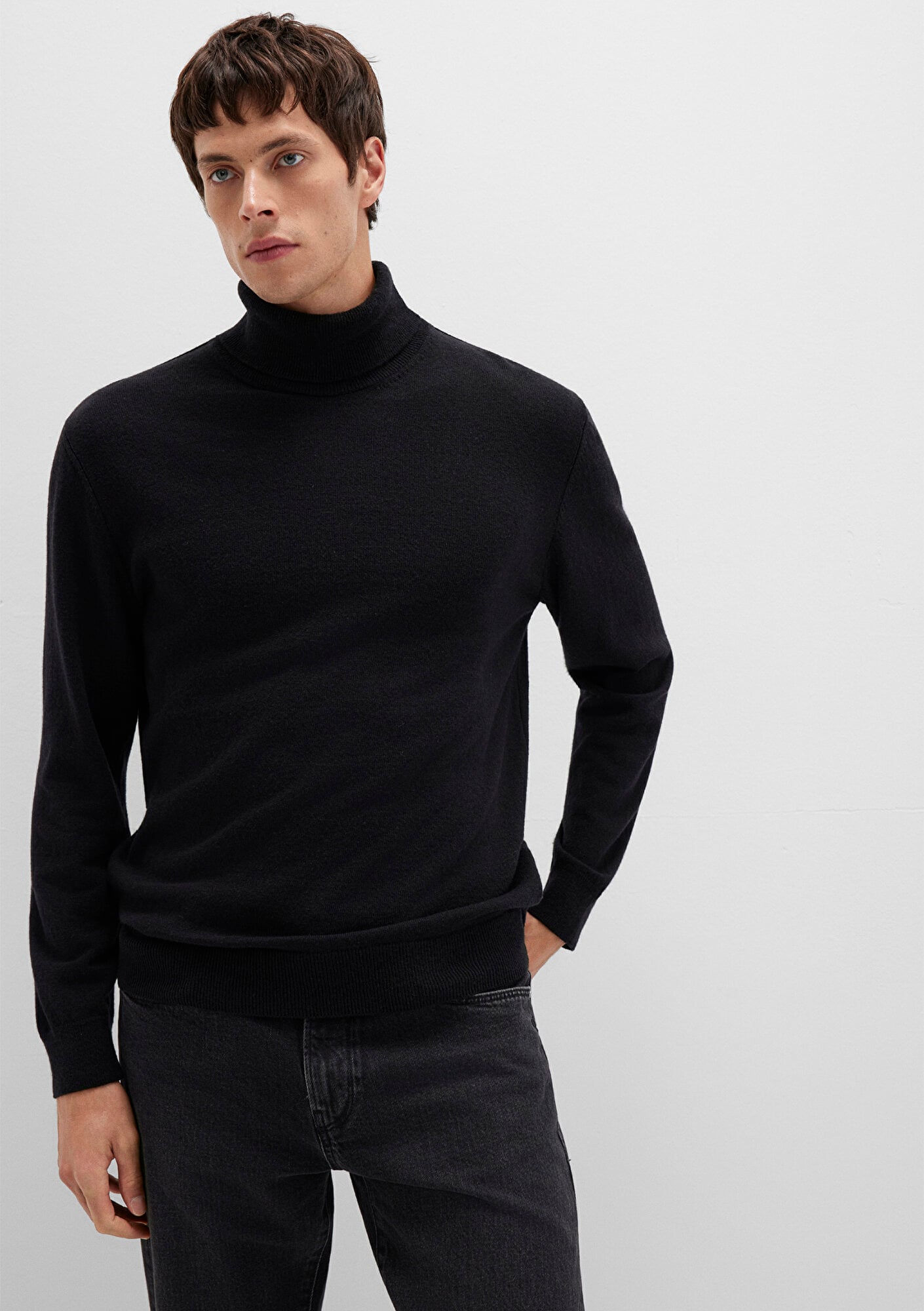 Mavi nin erkek koleksiyonundan Yün Karışımlı Boğazlı Siyah Kazak.
