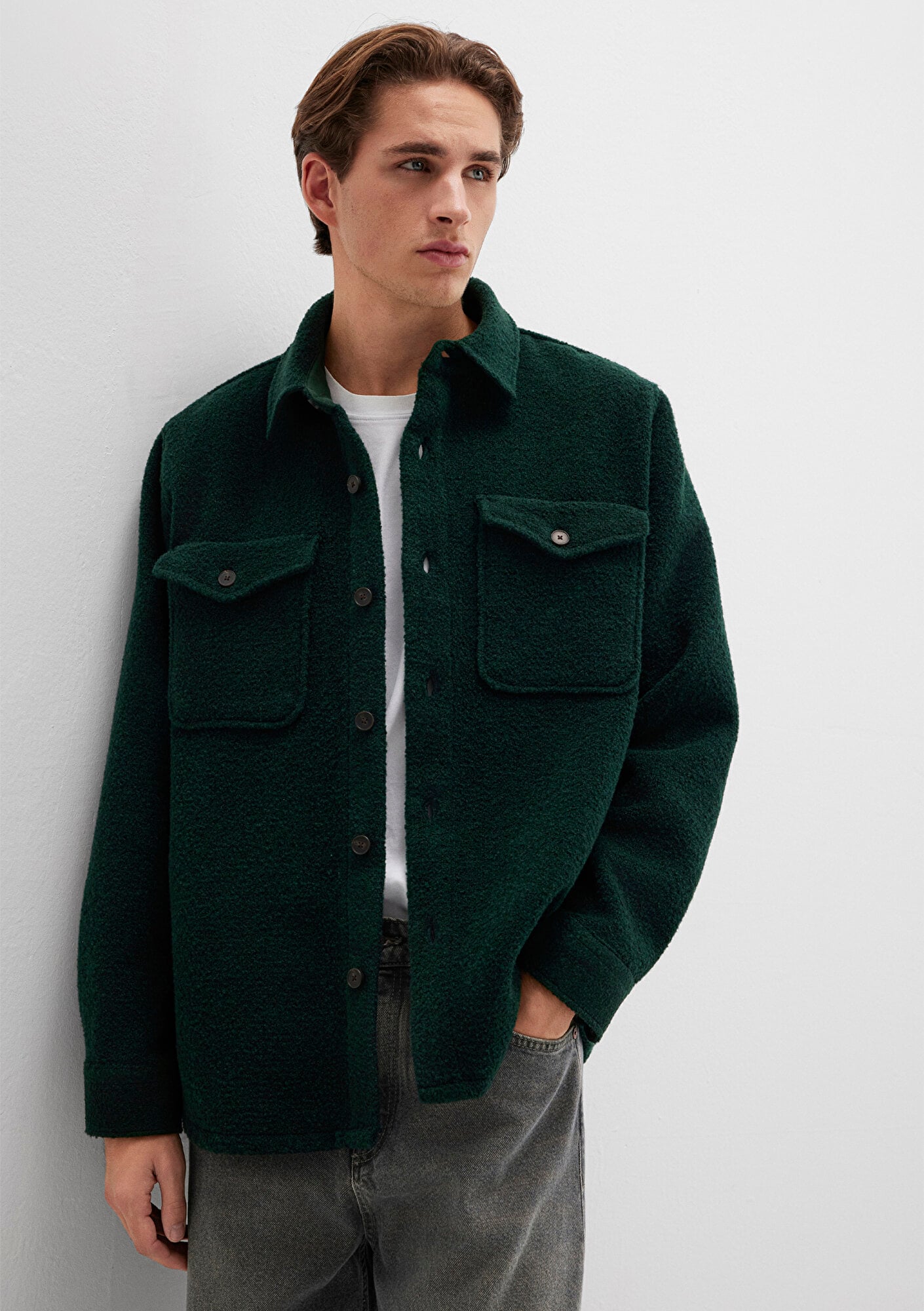 Mavi nin erkek koleksiyonundan Yün Karışımlı Yeşil Gömlek. İki adet düğmeli kapaklı ön cep.