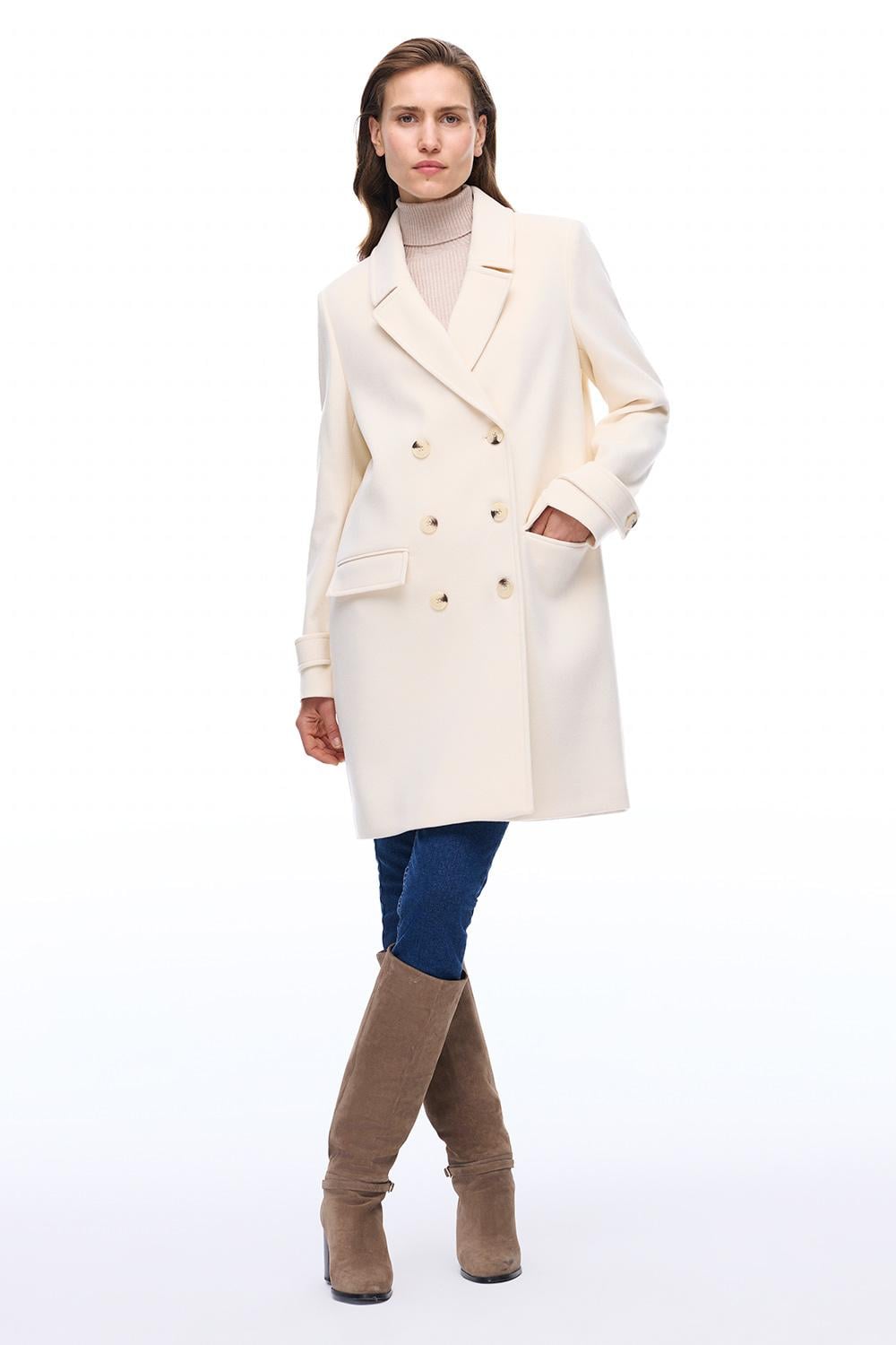 Mona Regular Fit Diz Üstü Takma Kol Erkek Yaka Ekru Kaban