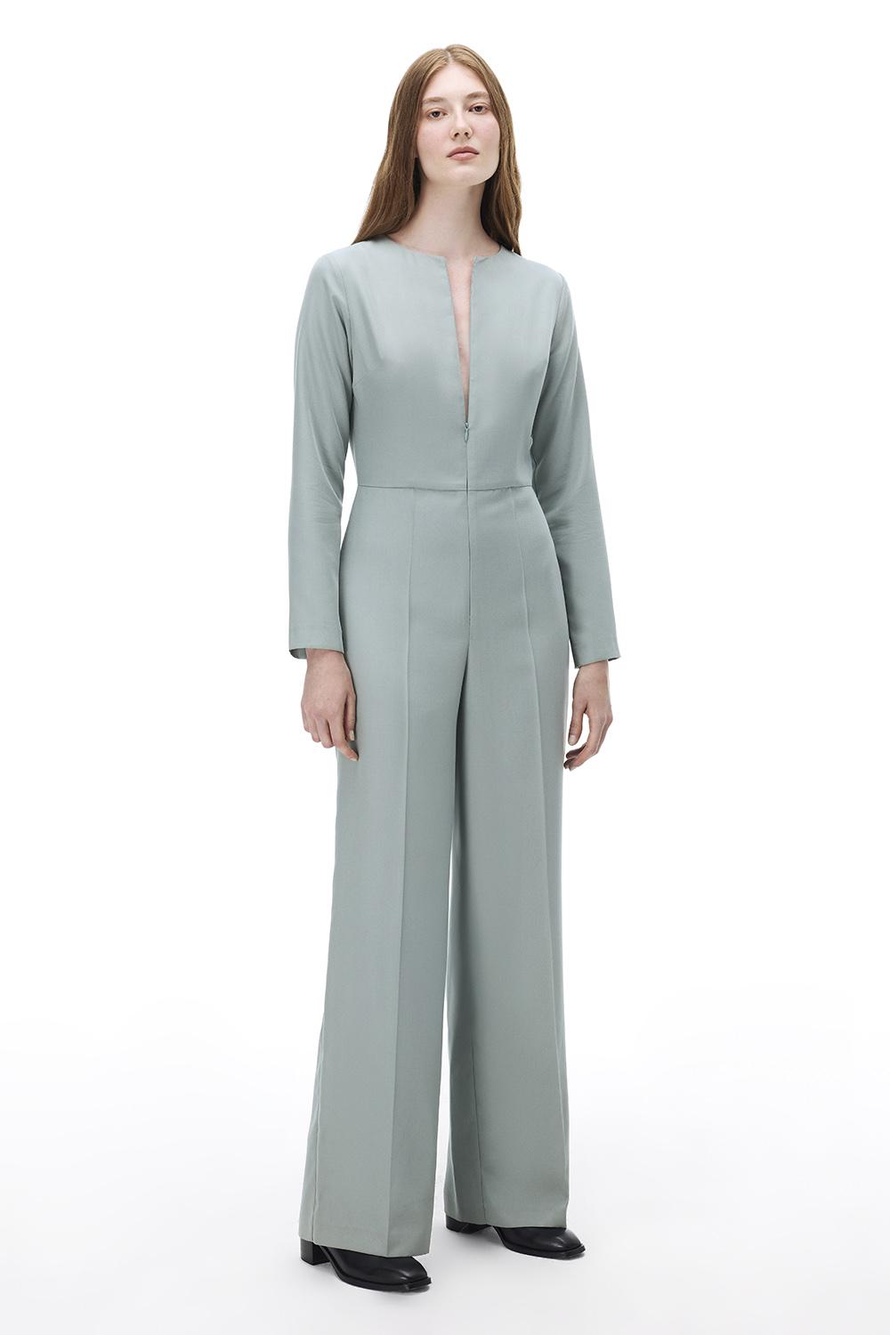 Morla Regular Fit Uzun Boy Takma Kol Yuvarlak Yaka Mint Tulum
