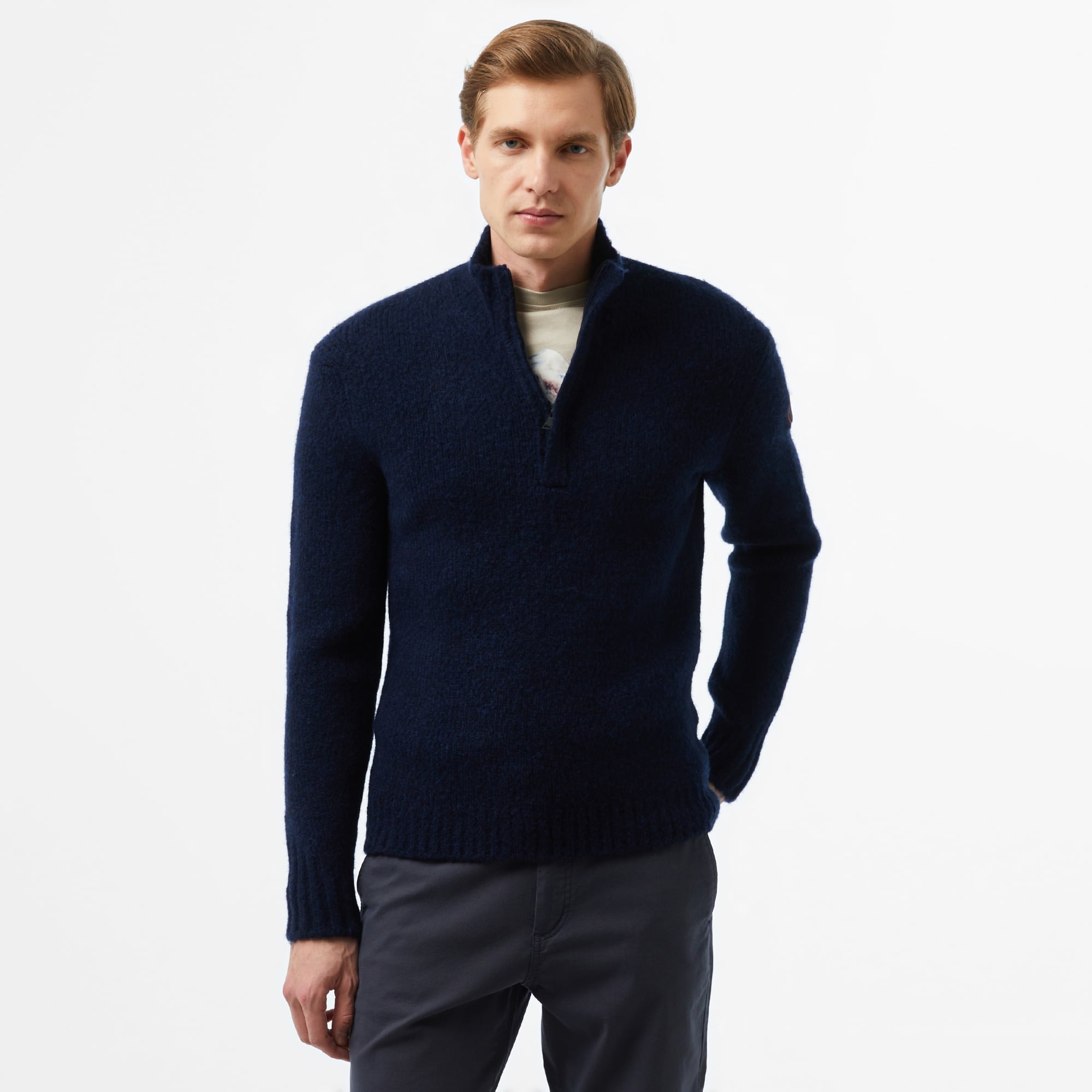 NAPAPIJRI erkek triko kazak, klasik lacivert tonunda zarif bir seçimdir.