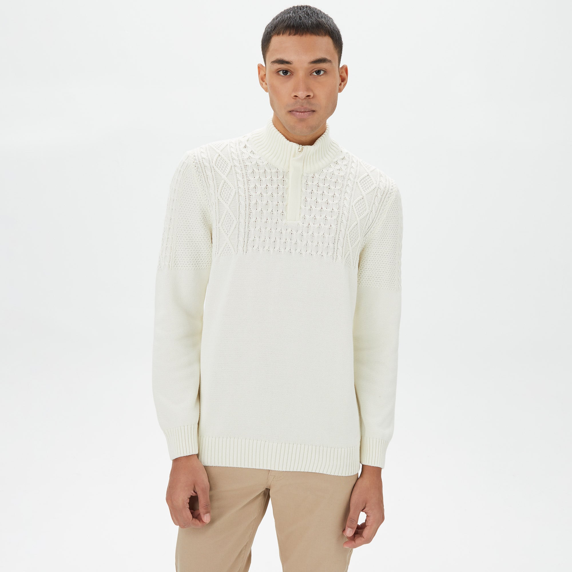 Nautica erkek desenli triko, yarım fermuar detayı ve modern kesimi ile tarzınıza özgünlük katıyor.