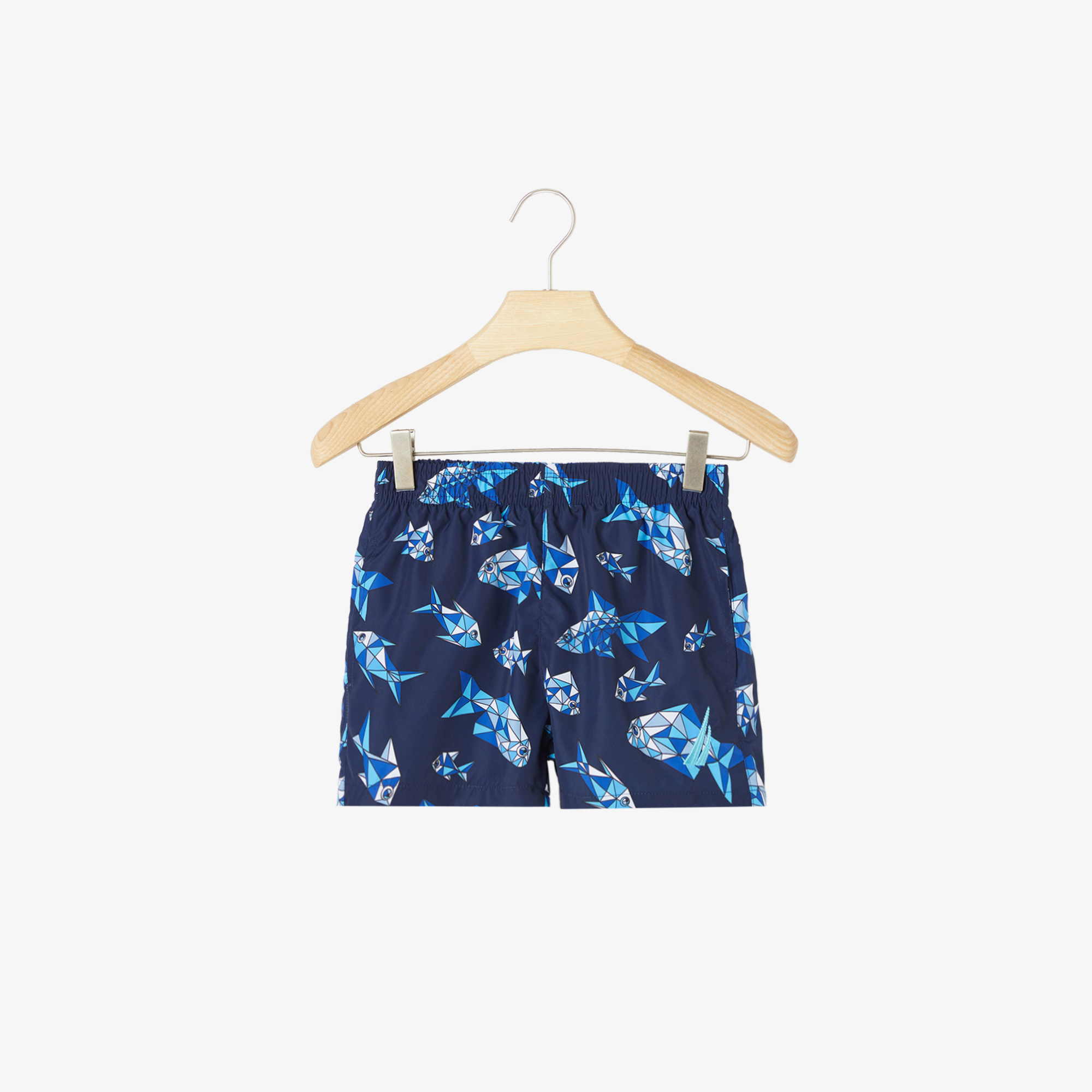 Balık baskı detayıyla erkek çocuk mayo şort, denizden ilham alan eğlenceli bir stil sunar. Hafif ve hızlı kuruyan kumaşıyla plaj ve havuz kullanımı için idealdir.