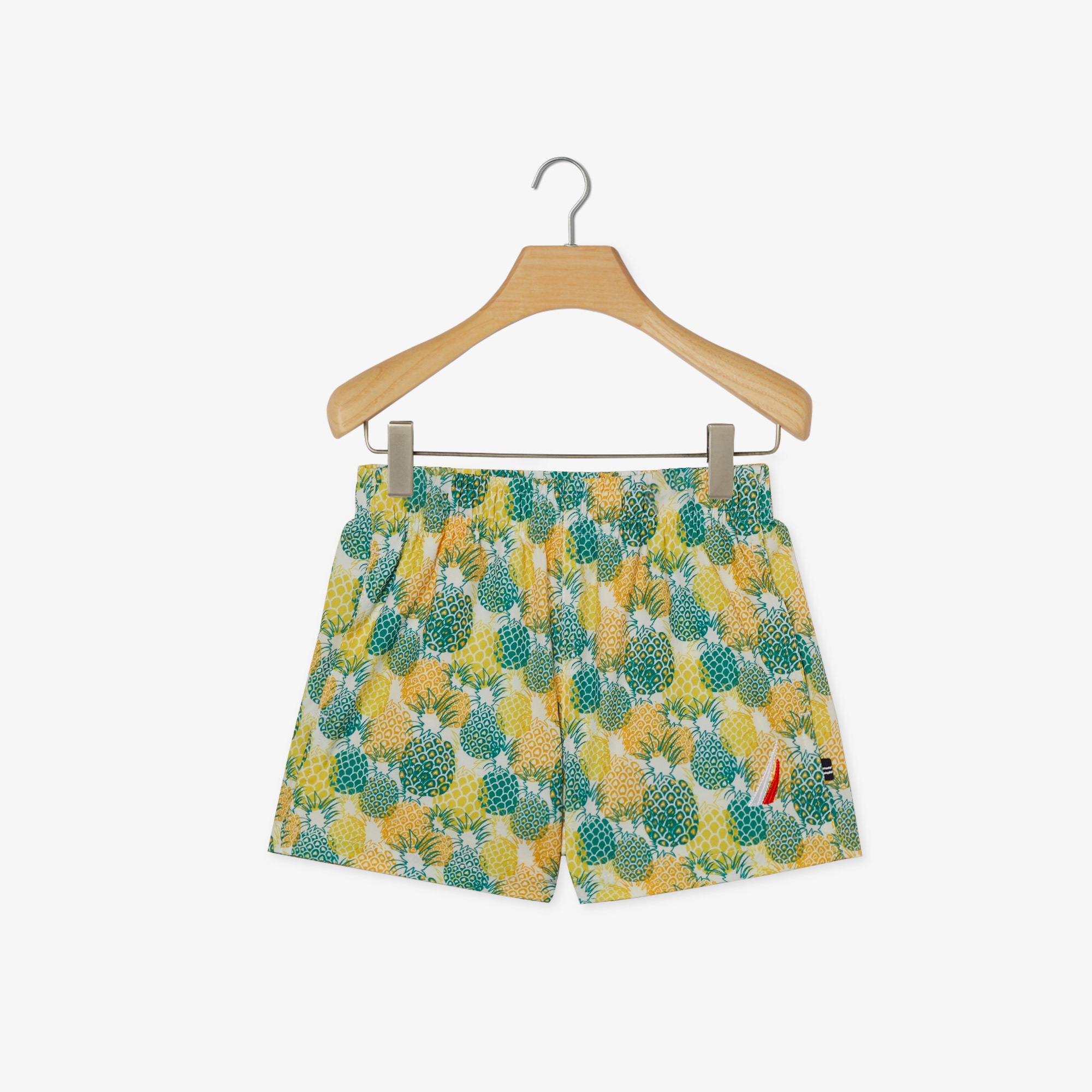 Nautica erkek mayo şortu ananas baskılı,lastikli bel bağlamalı, cepli tasarımı, erkek çocuklarının meraklı yapılarına uygun tasarlanmış. Hafif ve hızlı koruyan mayo şortlar denizden ve havuzdan sonra miniklere konfor sağlıyor.