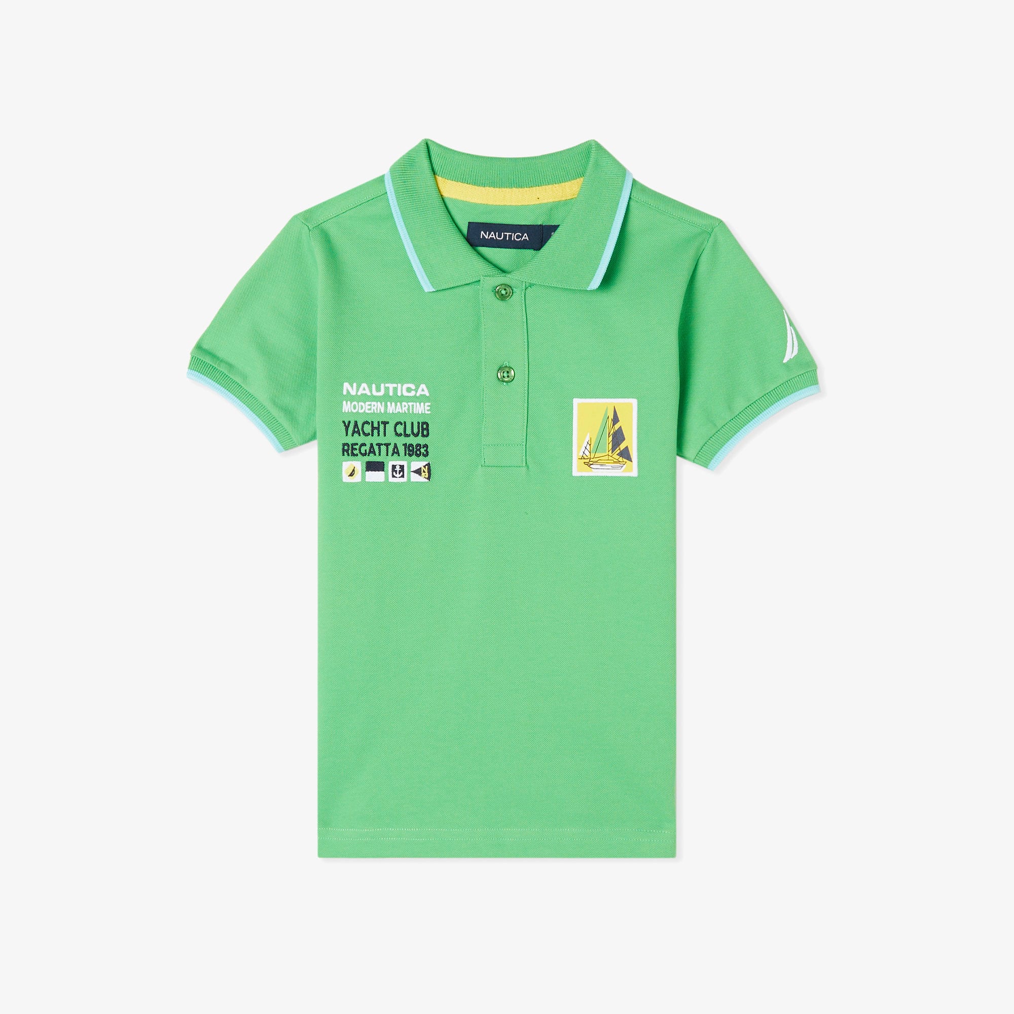 Yacht Club baskı detayıyla erkek çocuk polo, şık ve sportif bir stil sunar. Nefes alabilen pamuklu kumaşıyla gün boyu konfor sağlar.