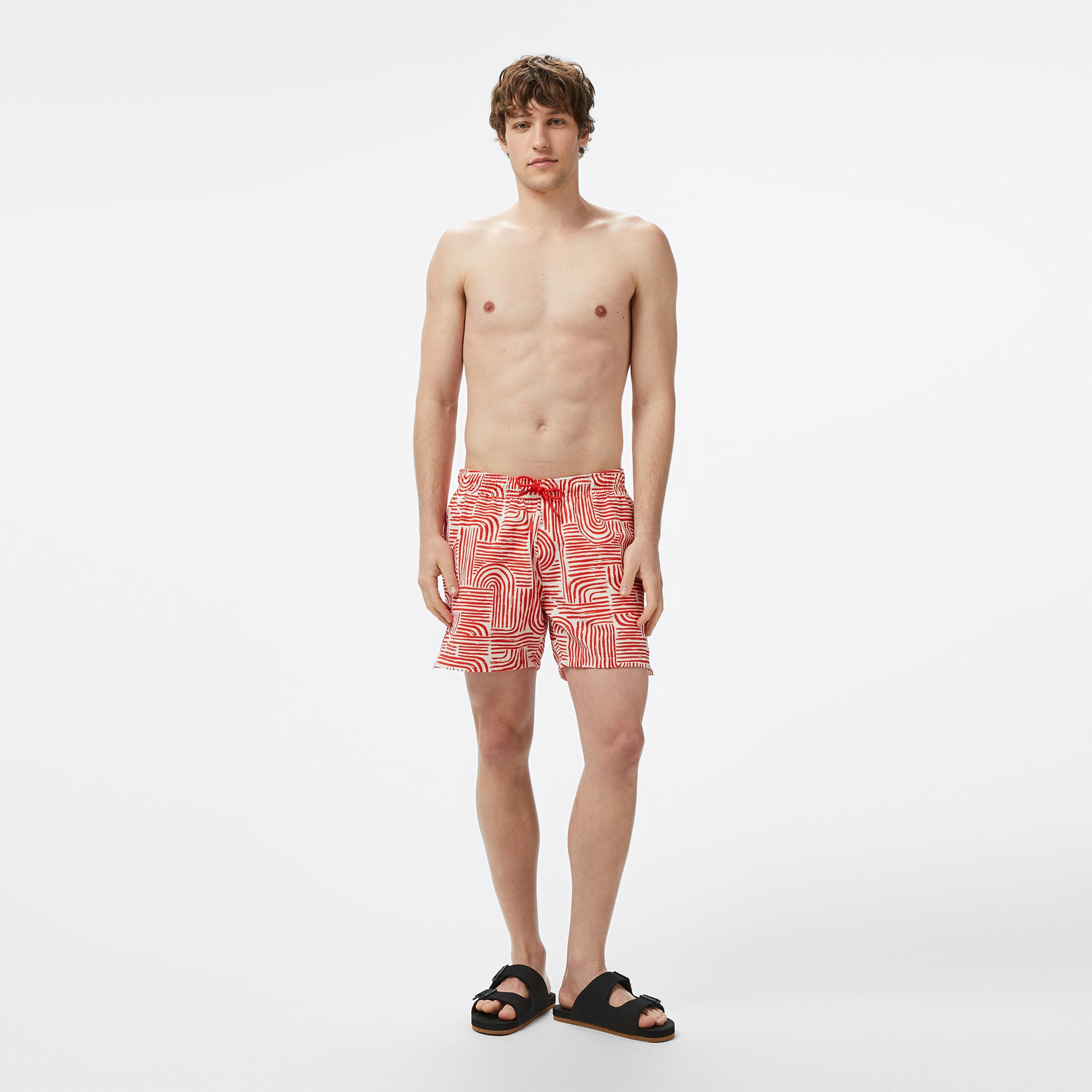 Konforlu dokusu ve hızlı kuruyan yapısıyla su kenarındaki anlarına eşlik eder. Pamuk karışımlı özel kumaşı sayesinde yumuşak bir his sunuyor, regular fit kesimi ve lastikli beliyle mükemmel uyum sağlıyor. Şık desenleri ve fonksiyonel arka cebiyle hem stilini tamamlıyor hem de pratik kullanım sunuyor.